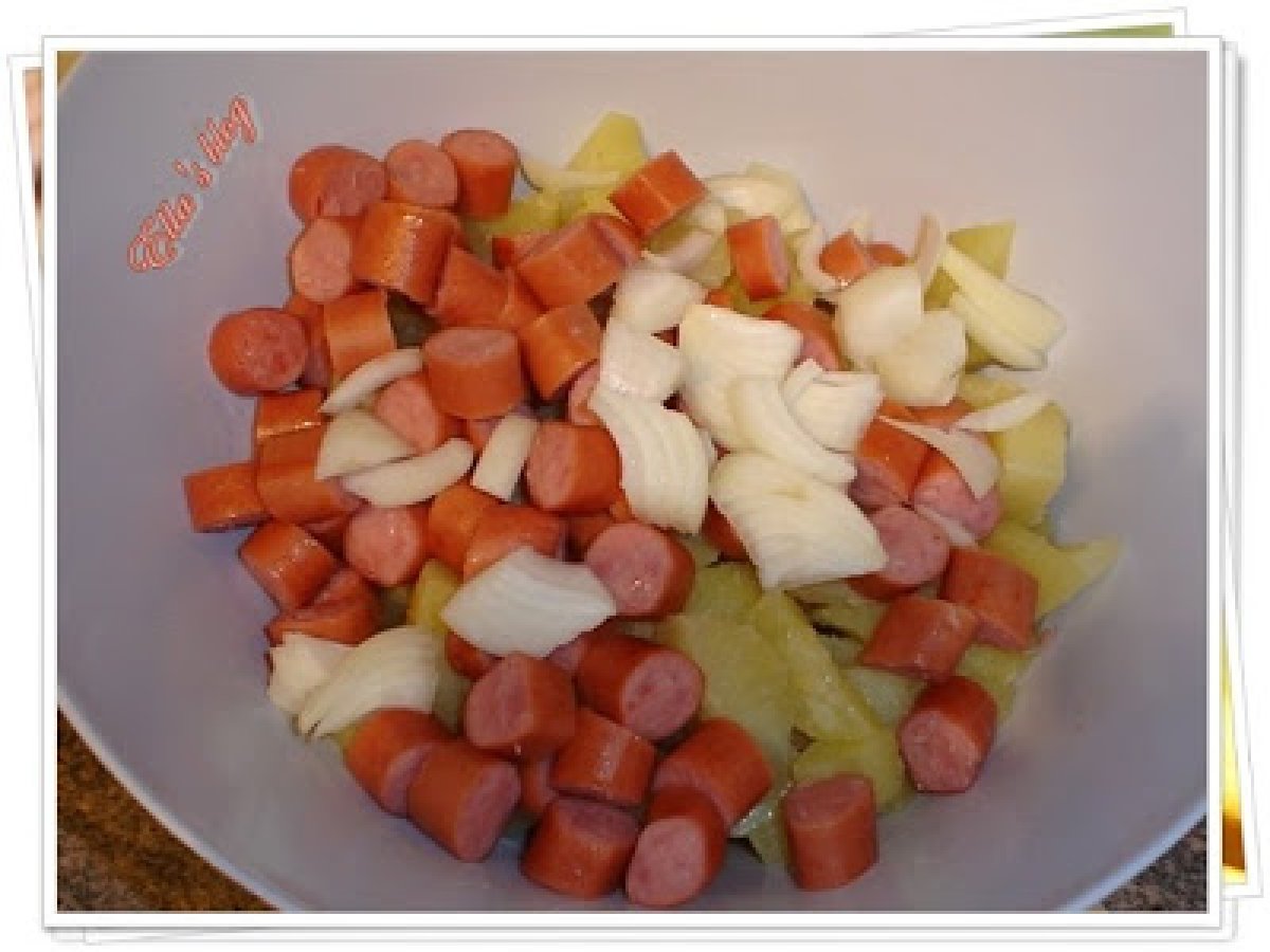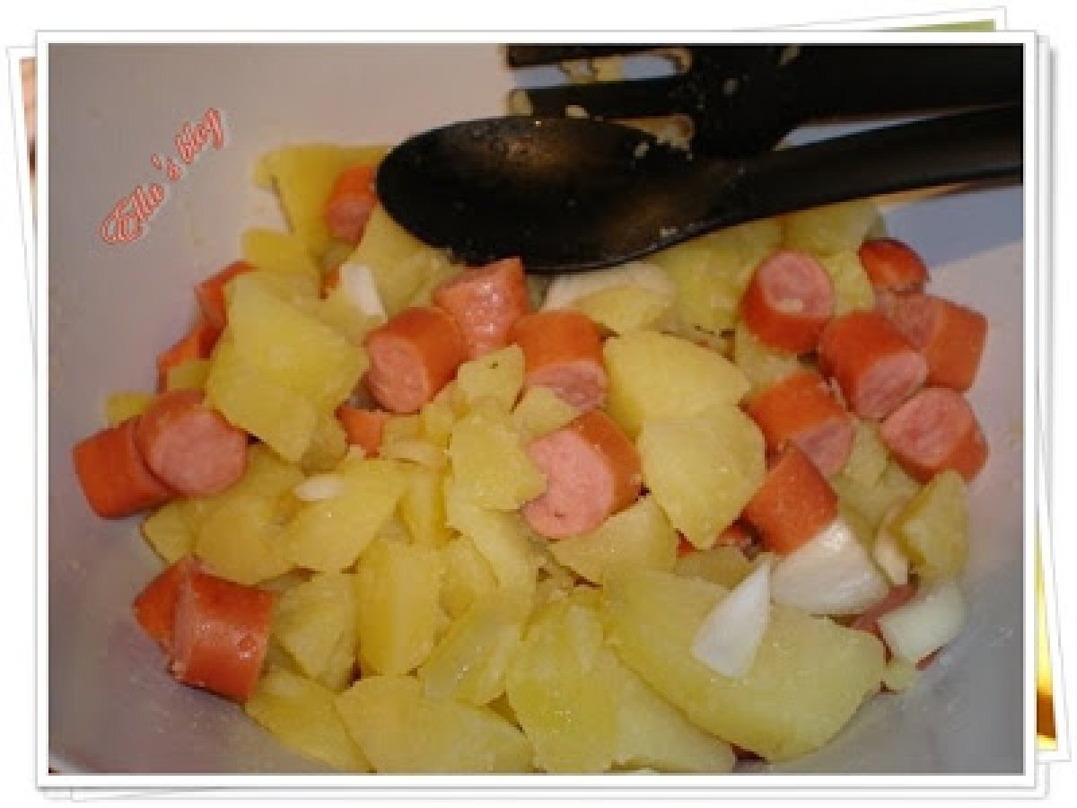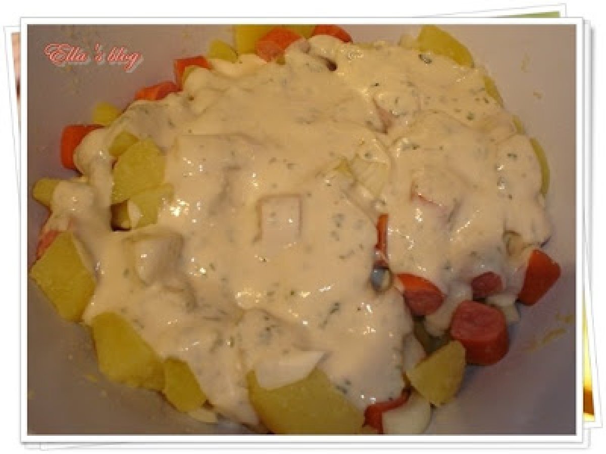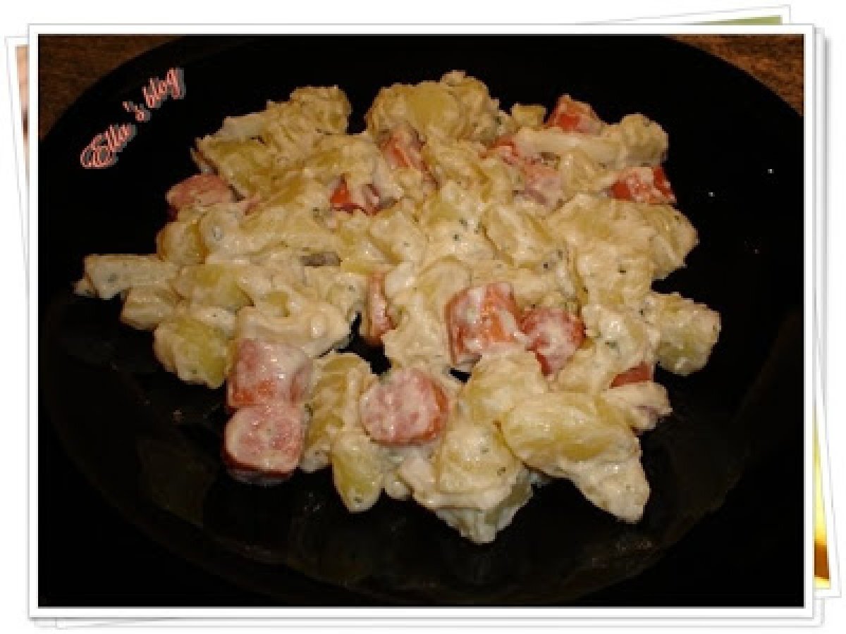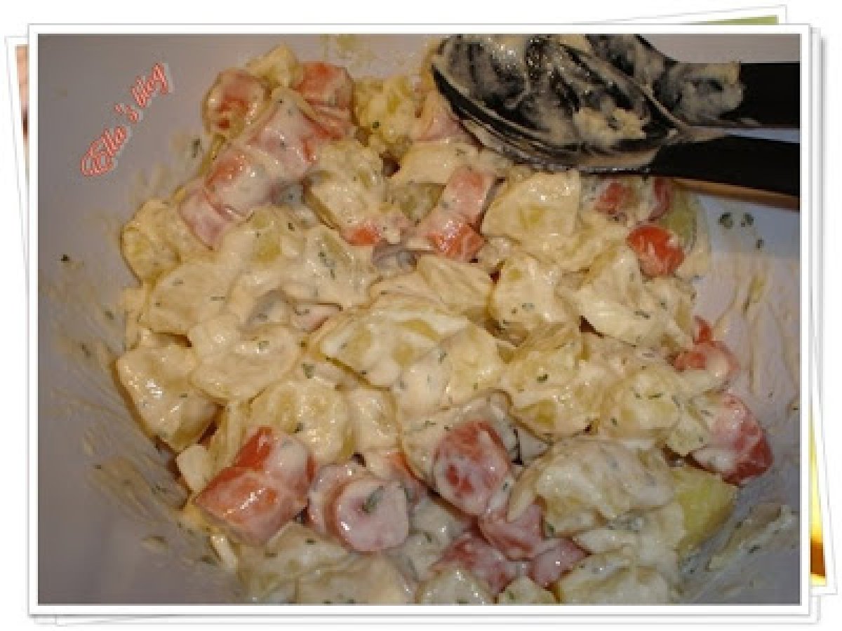 Salata nemteasca PrecedentulUrmătorul Felul principalFoarte ușor1 oră Trimite unui prieten Printează pagina Adresează o întrebare autorului Postează o poză cu rețeta gătită de tine Ingrediente 4 700 g cartofi 300 g cabanos 1/2 ceapa 2 iaurturi naturale 1 lingura de mustar 1 lingura de otet balsamic tarhon, patrunjel, sare