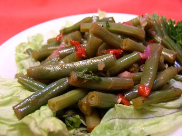Salata spaniola de fasole verde Felul principalFoarte ușor40 min586 Kcal Trimite unui prieten Printează pagina Adresează o întrebare autorului Postează o poză cu rețeta gătită de tine Ingrediente 2 500 g fasole verde 2 ardei rosii 1 / 4 pahar ulei de masline(sau mai mult) 2 linguri de otet balsamic 2 linguri de suc de lamaie 1 / 2 ceapa rosie, tocata 2 linguri de patrunjel verde, tocat fin 1-2 lingurita de zahar 1/4-1/2 lingurita sare 1 / 8 lingurita piper salata verde Cost estimat: 5.35Euros€ (2.68€/porție)