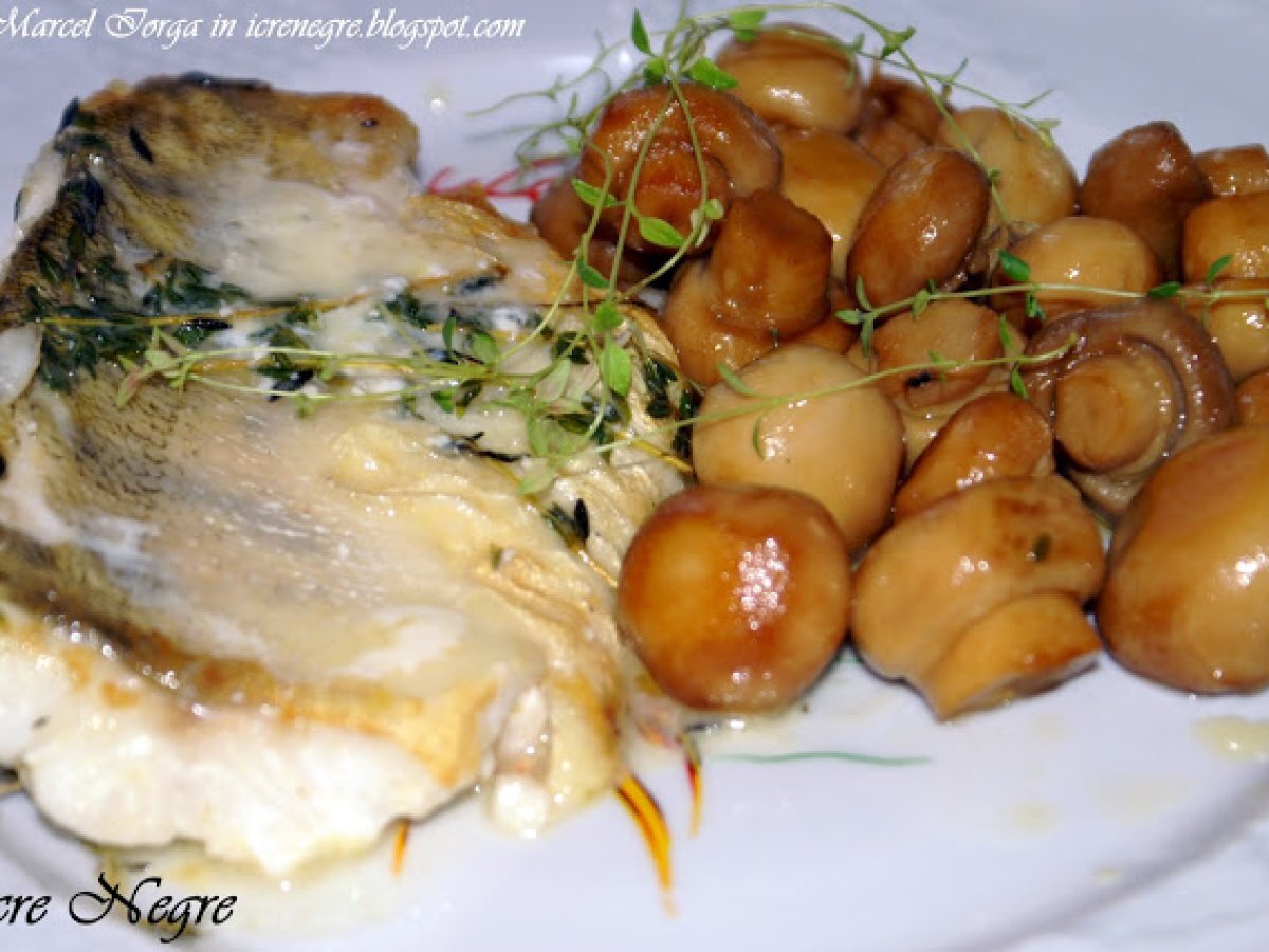 Salau de dunare in sos de vin cu ciuperci PrecedentulUrmătorul Felul principalFoarte ușor55 min Trimite unui prieten Printează pagina Adresează o întrebare autorului Postează o poză cu rețeta gătită de tine Ingrediente 6 1 alau din care scoatem 2 bucati de fileu cu pilele 400 g de ciuperci 100 ml de vin alb sec 2 linguri de ulei de masline 70 g de unt 3-4 catei de usturoi, zdrobiti cateva fire de cimbru proaspat 1 lingurita de otet de vin alb sare si piper dupa gust
