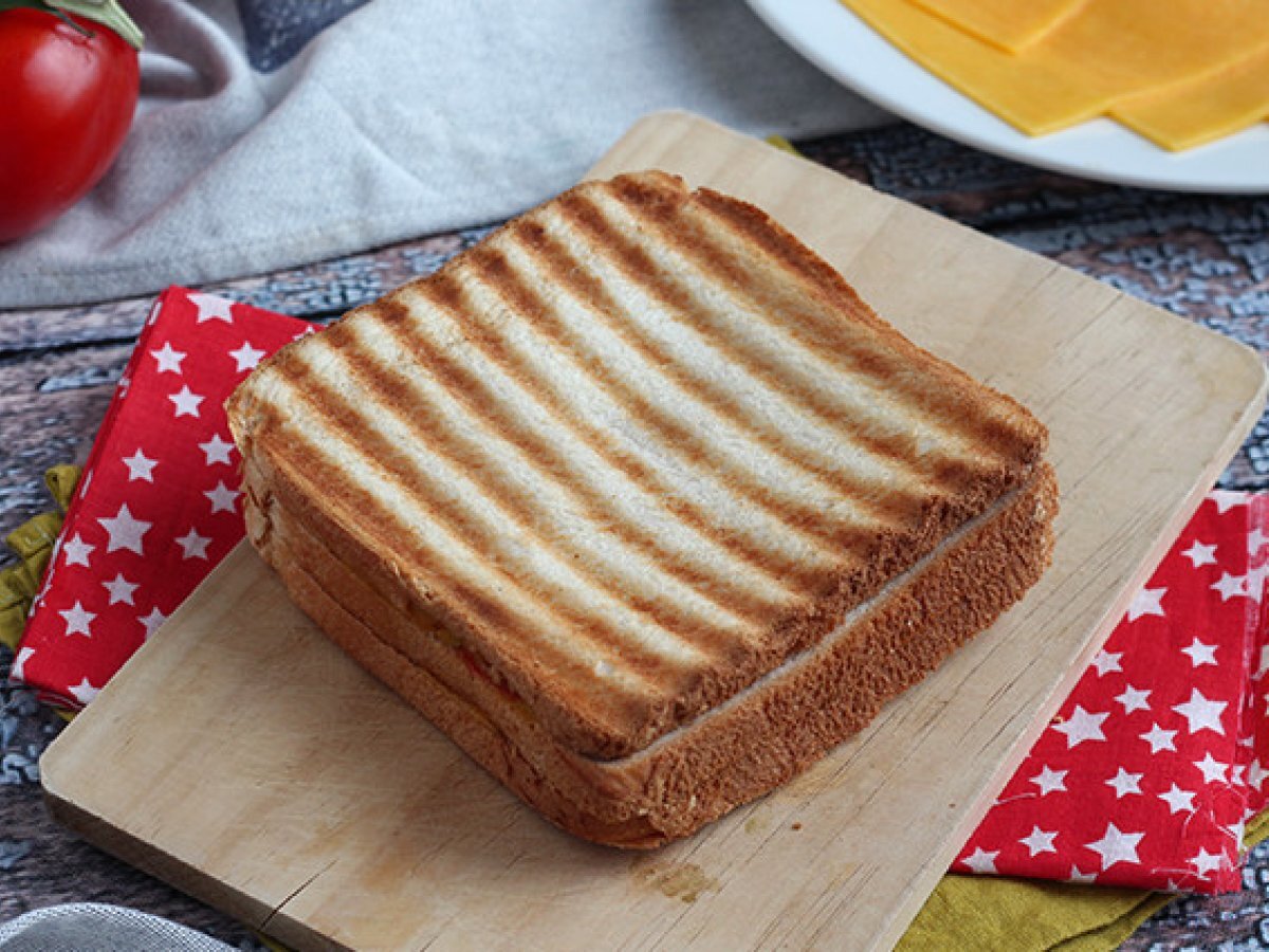In cele din urma, puneti sandvisul intr-un aparat de facut sandwichuri, intr-o tigaie sau sau in cuptor. E gata !