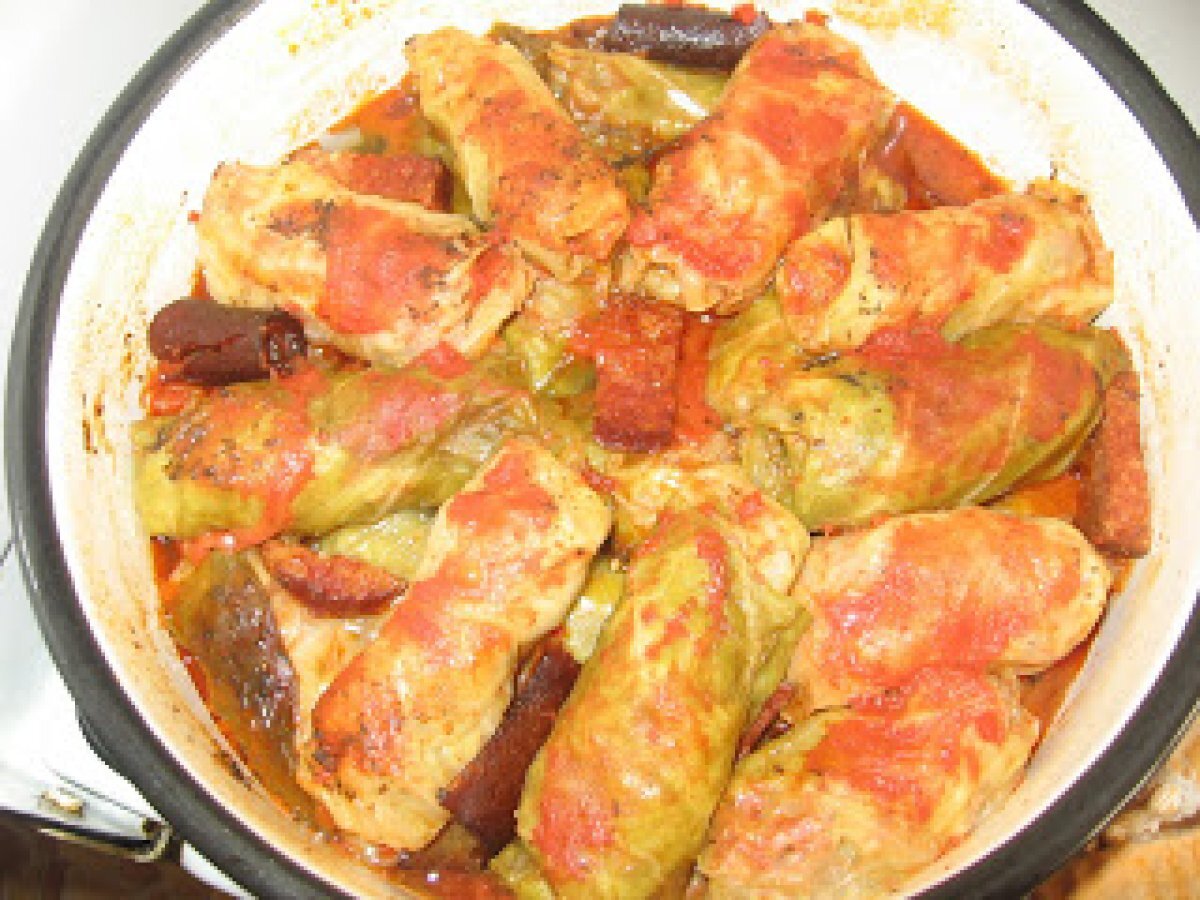 Sarmalute din varza dulce Felul principalFoarte ușor1 h 5 m Trimite unui prieten Printează pagina Adresează o întrebare autorului Postează o poză cu rețeta gătită de tine Ingrediente 6 1 varza noua proaspata 3/4 cana orez 1 kg carne tocata amestec 1 ceapa marar cimbru 1/2 l bulion facut in casa oase afumate 150 g bacon sare piper