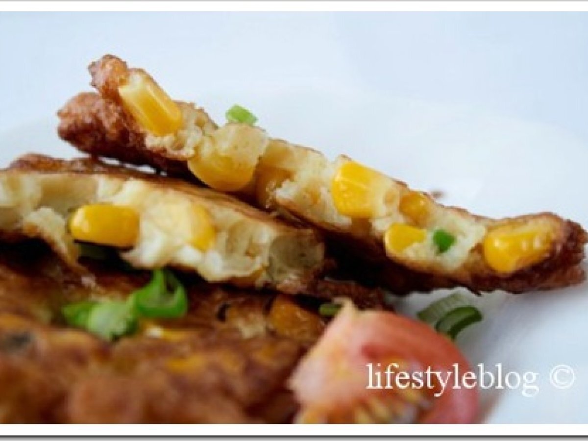- Se amesteca untul moale cu laptele, apoi se adauga ouale si se amesteca bine. Faina se adauga treptat si se amesteca mereu, pentru a nu forma cocoloase. Se adauga porumbul si ceapa verde. Se sareaza.