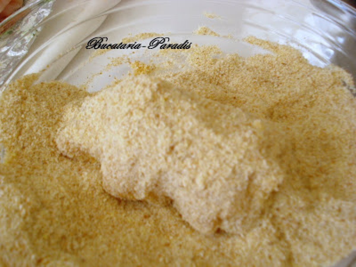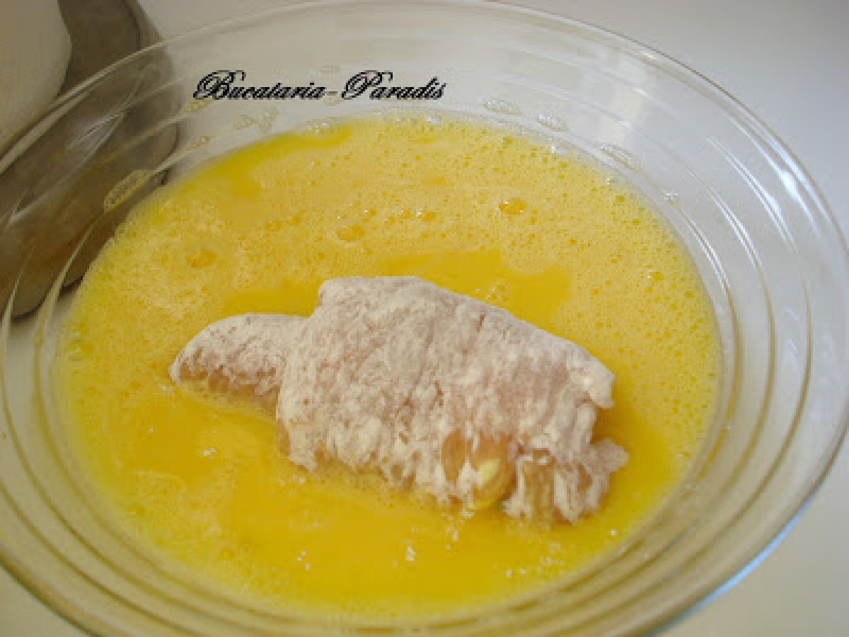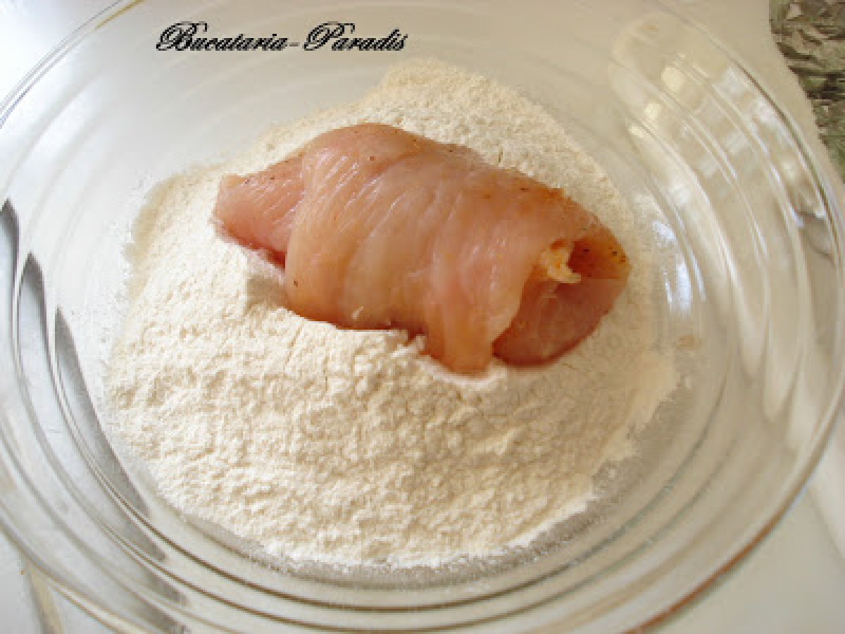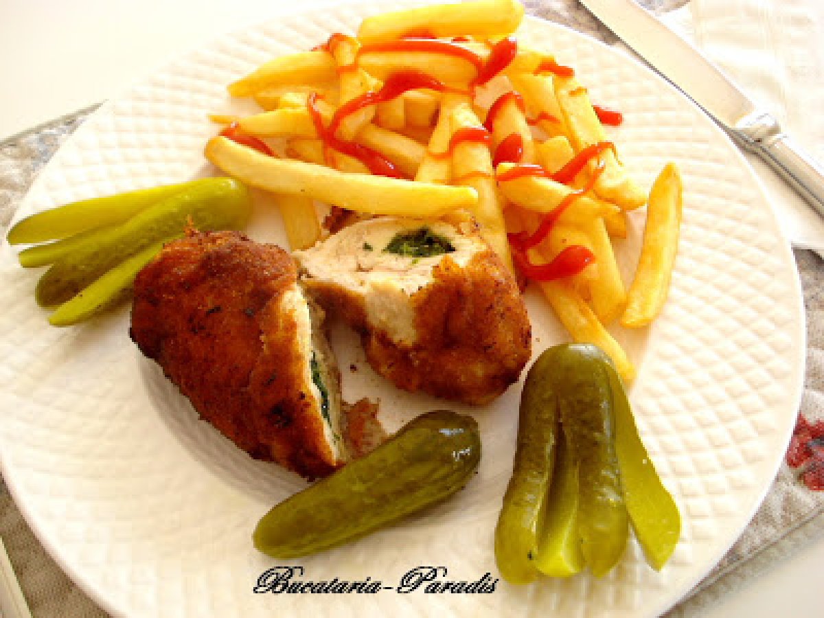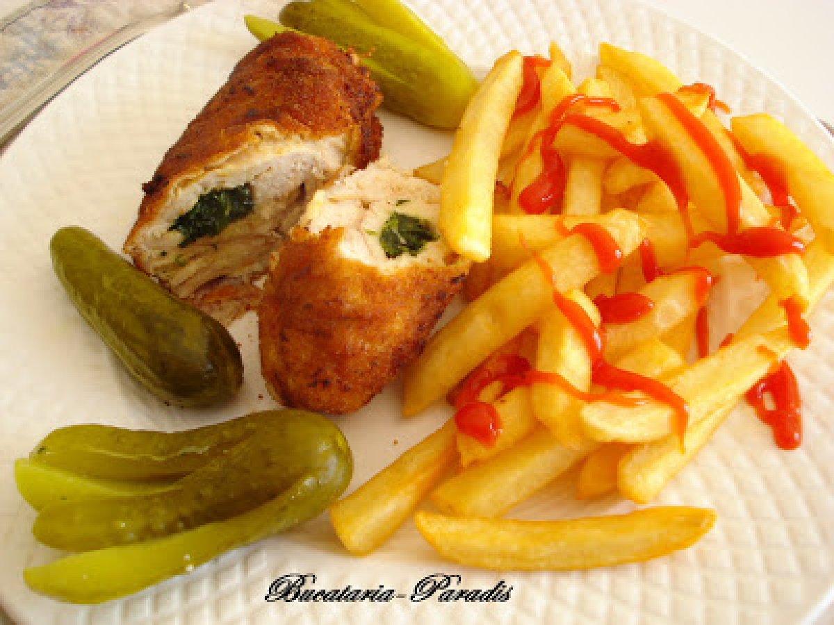 Snitel kievskaia de pui cu cartofi prajiti la cuptor. PrecedentulUrmătorul Felul principalFoarte ușor40 min Trimite unui prieten Printează pagina Adresează o întrebare autorului Postează o poză cu rețeta gătită de tine Ingrediente 4 2 bucati piept de pui 100 g unt 2-3 oua 3-4 linguri faina 100 g pesmet 200 ml ulei 1/2 legatura patrunjel verde(in cazul meu patrunjel+spanac) 1 lamaie sare,piper.