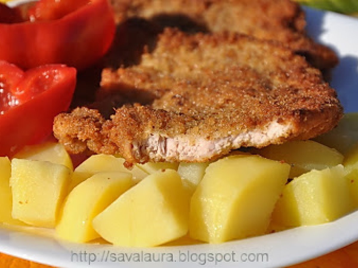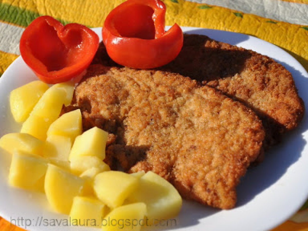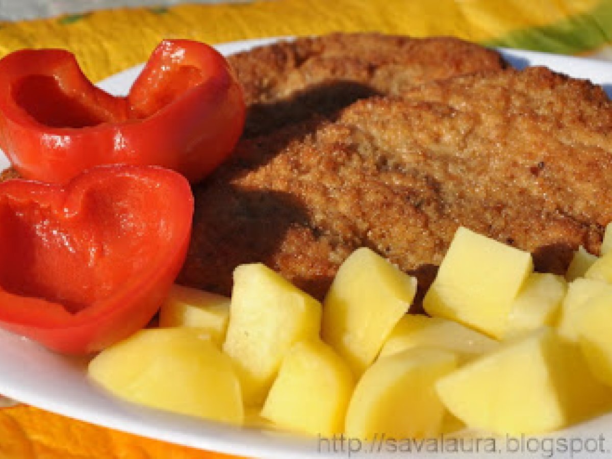 Snitel vienez PrecedentulUrmătorul Felul principalFoarte ușor45 min Trimite unui prieten Printează pagina Adresează o întrebare autorului Postează o poză cu rețeta gătită de tine Ingrediente 4 4 felii snitel manzatsau porc 100 g. faina 2 oua 1 lingura ulei 2 linguri lapte pesmet 1 lamaie