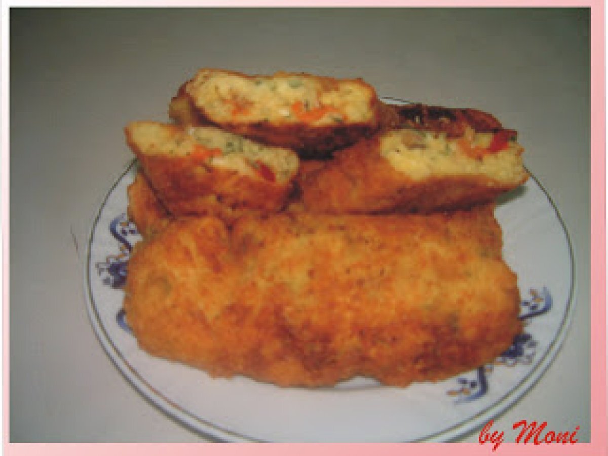"snitele" din cartofi cu legume chinezesti PrecedentulUrmătorul Felul principalFoarte ușor40 min Trimite unui prieten Printează pagina Adresează o întrebare autorului Postează o poză cu rețeta gătită de tine Ingrediente 4 un kg de cartofi fierti in coaja, 150-200 g de telemea de vaca, un ou, sare, piper, marar, patrunjel, 3 linguri faina. Pentru prajit: 2 oua, ulei, faina, pesmet, sare.