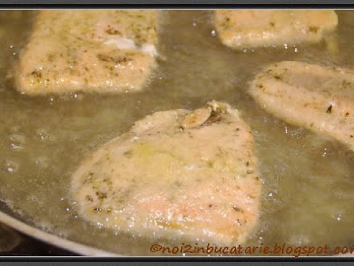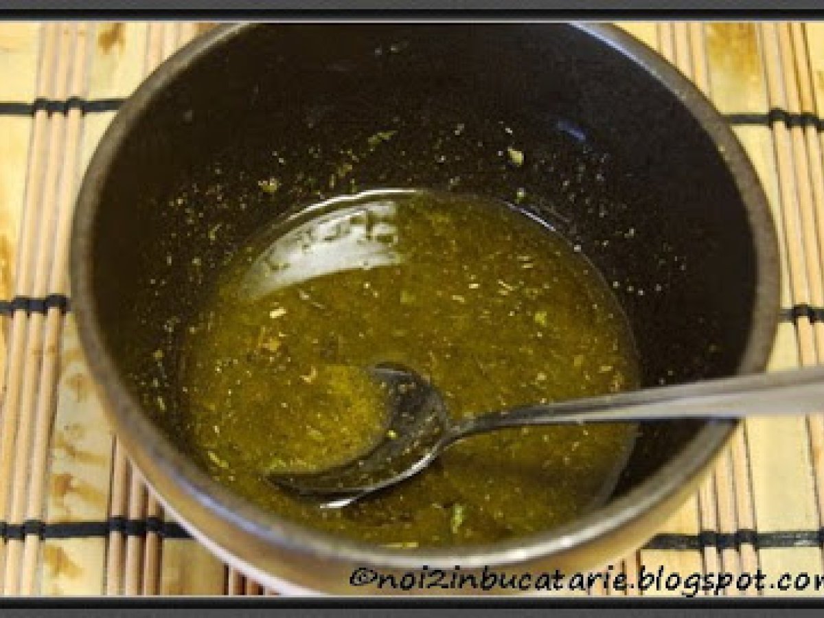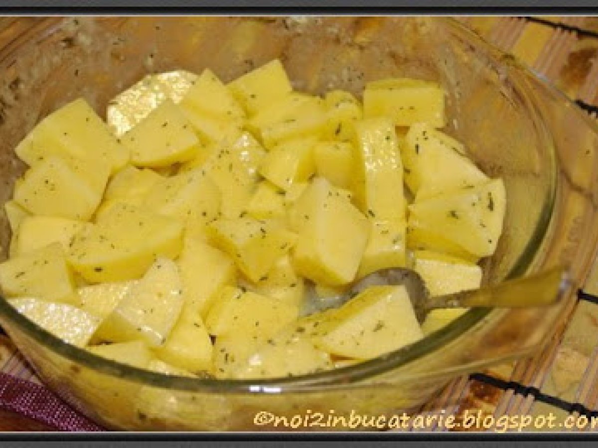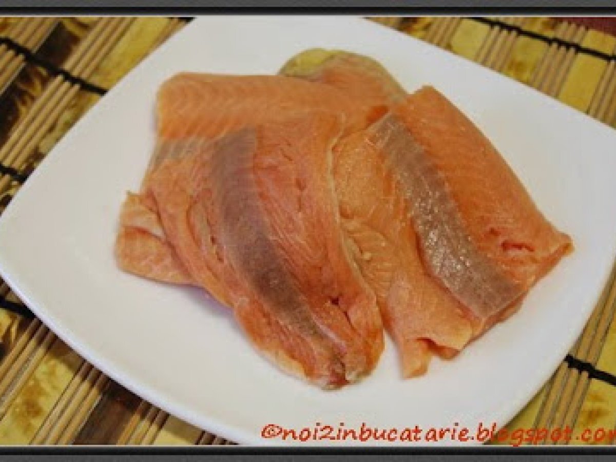 Somon aromat cu cartofi la cuptor PrecedentulUrmătorul Felul principalFoarte ușor1 oră Trimite unui prieten Printează pagina Adresează o întrebare autorului Postează o poză cu rețeta gătită de tine Ingrediente 4 Pentru peste: 4 bucati de somon file 5-6 linguri de ulei de masline zeama de la o lamaie condimente (cimbru, busuioc, condimente pentru peste din comert, sare, piper) 3-4 linguri de faina Pentru garnitura: 4-5 cartofi medii 3 linguri unt topit 3 linguri ulei condimente (cimbru, usturoi granulat, condimente pentru cartofi, piper, sare)
