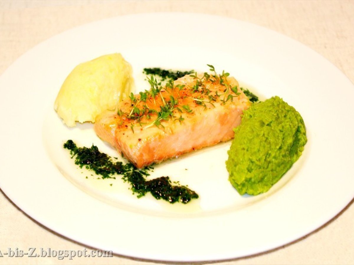 Somon cu piure de cartofi si mazare PrecedentulUrmătorul Felul principalUșor1 oră Trimite unui prieten Printează pagina Adresează o întrebare autorului Postează o poză cu rețeta gătită de tine Ingrediente 2 2 bucăţi somon, cam de 150-200 gr. fiecare (să aibă aceeaşi grosime peste tot) 500 ml ulei (eu am amestecat ulei de măsline cu ulei de floarea soarelui) 250 gr. mazăre congelată 1/2 ceapă 50 ml vin alb sec supă de legume 1 lingură zeamă de lămâie 2-3 cartofi 150 gr. ţelină (rădăcină) 30 gr. unt puţin lapte cald pătrunjel verde tocat 2 linguri ulei de măsline sare piper