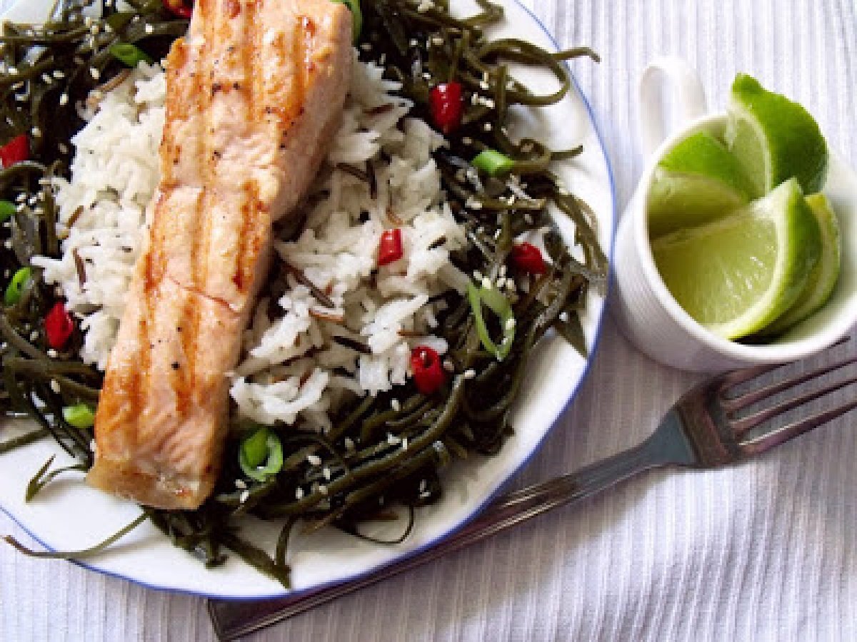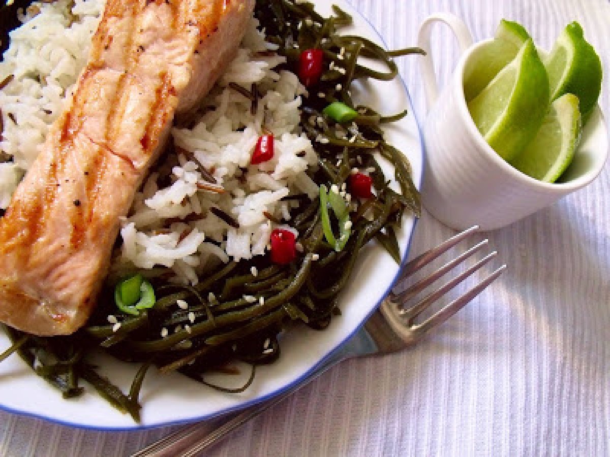 Somon cu salata de alge marine(salmon &seaweed salad) PrecedentulUrmătorul Felul principalFoarte ușor35 min Trimite unui prieten Printează pagina Adresează o întrebare autorului Postează o poză cu rețeta gătită de tine Ingrediente 4 1 lingura de ulei, 1 lingura de otet alb, 3 linguri sos de soia, 3-4 catei de usturoi pisati, 1 lingurita zahar brun, 1 lingurita ghimbir prospat ras sare,piper dupa gust.