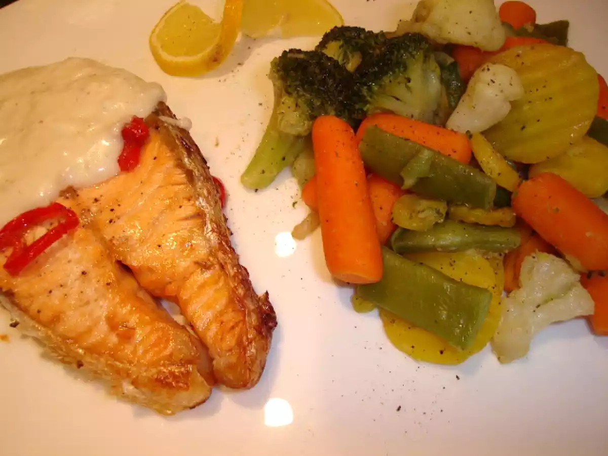 Somon cu sos de sampanie PrecedentulUrmătorul Felul principalFoarte ușor40 min Trimite unui prieten Printează pagina Adresează o întrebare autorului Postează o poză cu rețeta gătită de tine Ingrediente 4 Pentru somon ne trebuie: Ulei de masline 50 ml vin alb Sare, piper Jumatate lamaie stoarsa 2 catei de usturoi Pentru sosul de sampanie avem nevoie de: 20 ml ulei de masline 1ceapa mica tocata marunt 100 ml sampanie Putina lamaie stoarsa 2 linguri faina 250 ml smantana Un cubulet de unt