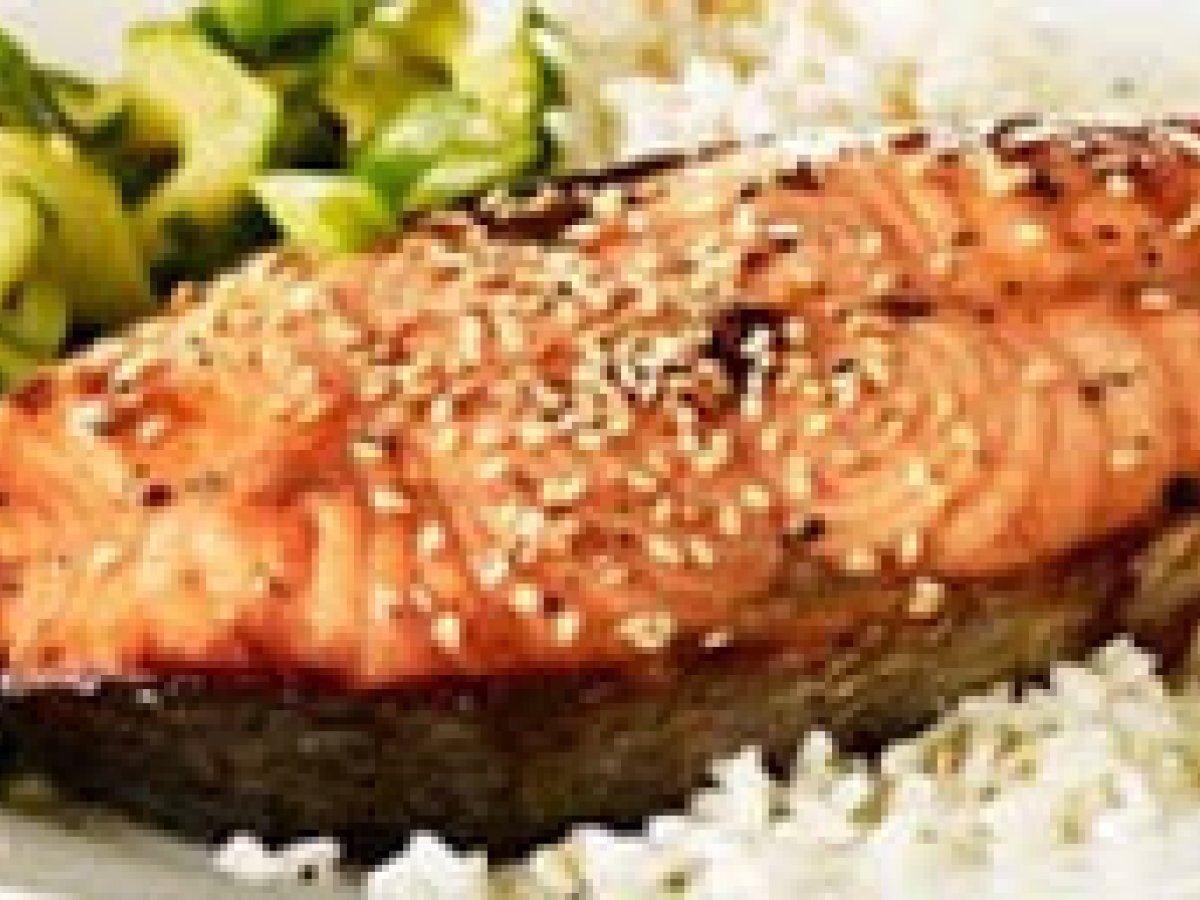 Somon teriyaki Felul principalFoarte ușor40 min Trimite unui prieten Printează pagina Adresează o întrebare autorului Postează o poză cu rețeta gătită de tine Ingrediente 2 1 pahar orez alb 2 catraveti mari 1 ceapa verde 2 linguri otet alb 1 ceasca sos de soia 2 linguri de zahar piper 1 ceasca vin de orez 1 lingura de miere 4 bucati de somon proaspat 1 lingura seminte de susan