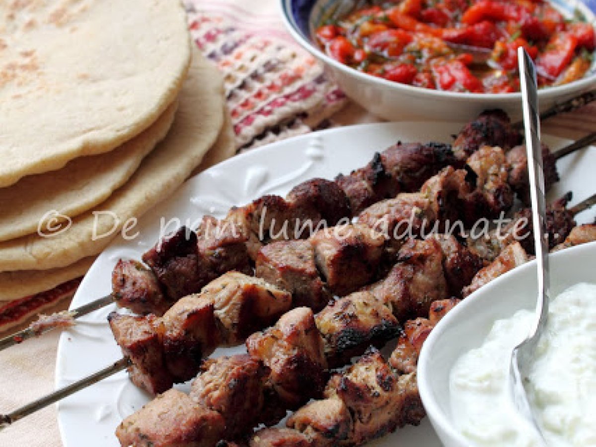 Souvlaki a la jamie oliver PrecedentulUrmătorul Felul principalFoarte ușor25 min Trimite unui prieten Printează pagina Adresează o întrebare autorului Postează o poză cu rețeta gătită de tine Ingrediente 4 500-700 g muschi de porc taiat in bucatele de 2-3 cm 1 lingura de menta proaspata tocata 1 lingurita oregano uscat 2 catei de usturoi dati pe razatoarea mica 100 ml ulei de masline zeama de la 1 lamaie 1 lingura de otet rosu un lingurita sare piper proaspat macinat dupa gust