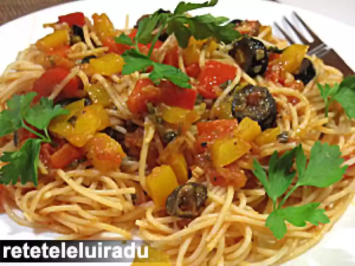Spaghete cu ansoa si ardei
