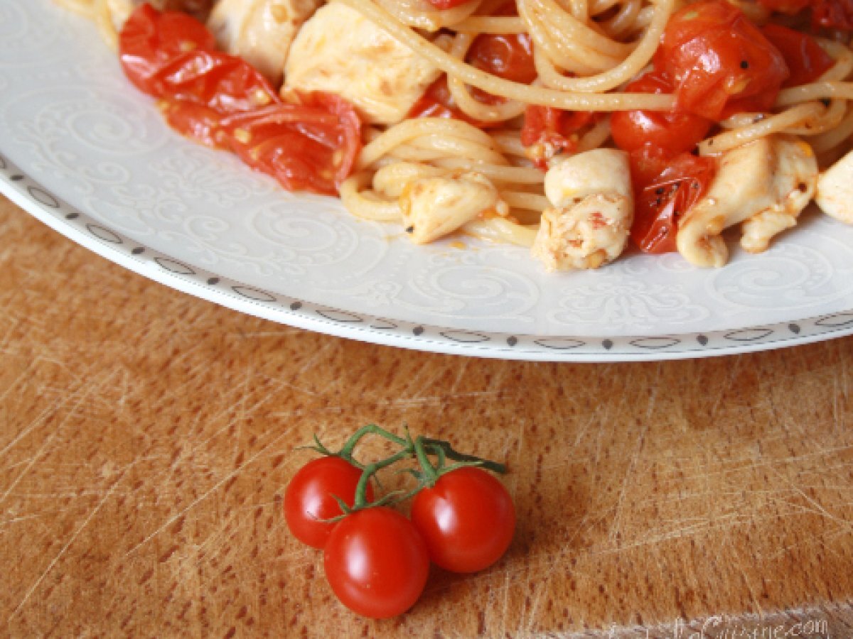 Spaghetti din cereale cu rosii cherry si pui Felul principalFoarte ușor30 min Trimite unui prieten Printează pagina Adresează o întrebare autorului Postează o poză cu rețeta gătită de tine Ingrediente 2 100 g spaghette din cereale, Alnatura 1/2 piept de pui o mana buna de rosii cherry ulei de masline parmezan ras sare de mare piper proaspat rajnit parmezan ras foi de busuioc