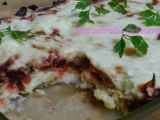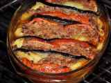 Sufleu de vinete Felul principalFoarte ușor55 min Trimite unui prieten Printează pagina Adresează o întrebare autorului Postează o poză cu rețeta gătită de tine Ingrediente 5 2 vinete, sare, 3 cepe, 2 catei de usturoi, 150 ml ulei, 4 rosii, 4 oua, 100 ml lapte, 250 g brânza mozzarella, 4 cartofi, 1 legatura patrunjel, piper.