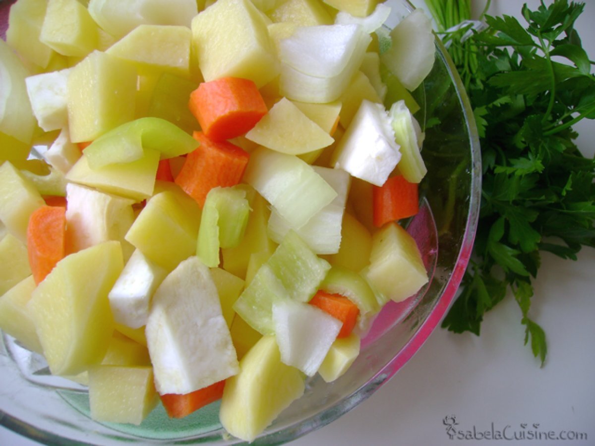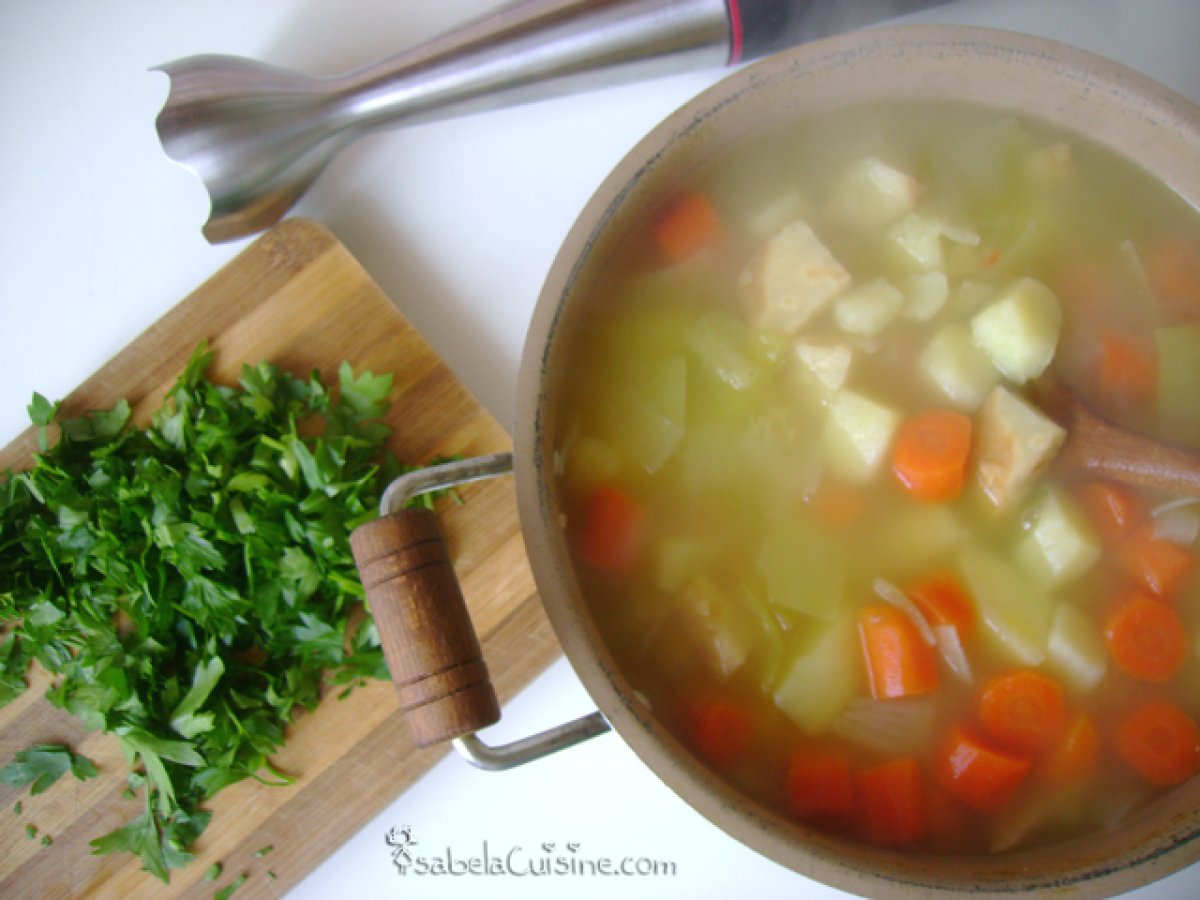 Supa-crema de legume PrecedentulUrmătorul Felul principalFoarte ușor45 min Trimite unui prieten Printează pagina Adresează o întrebare autorului Postează o poză cu rețeta gătită de tine Ingrediente 4 3 cartofi medii 3 morcovi 1 ceapa 1 bucata de telina 1 ardei capia verde 1 legatura de patrunjel apa, sare crutoane, le pregatiti ca aici