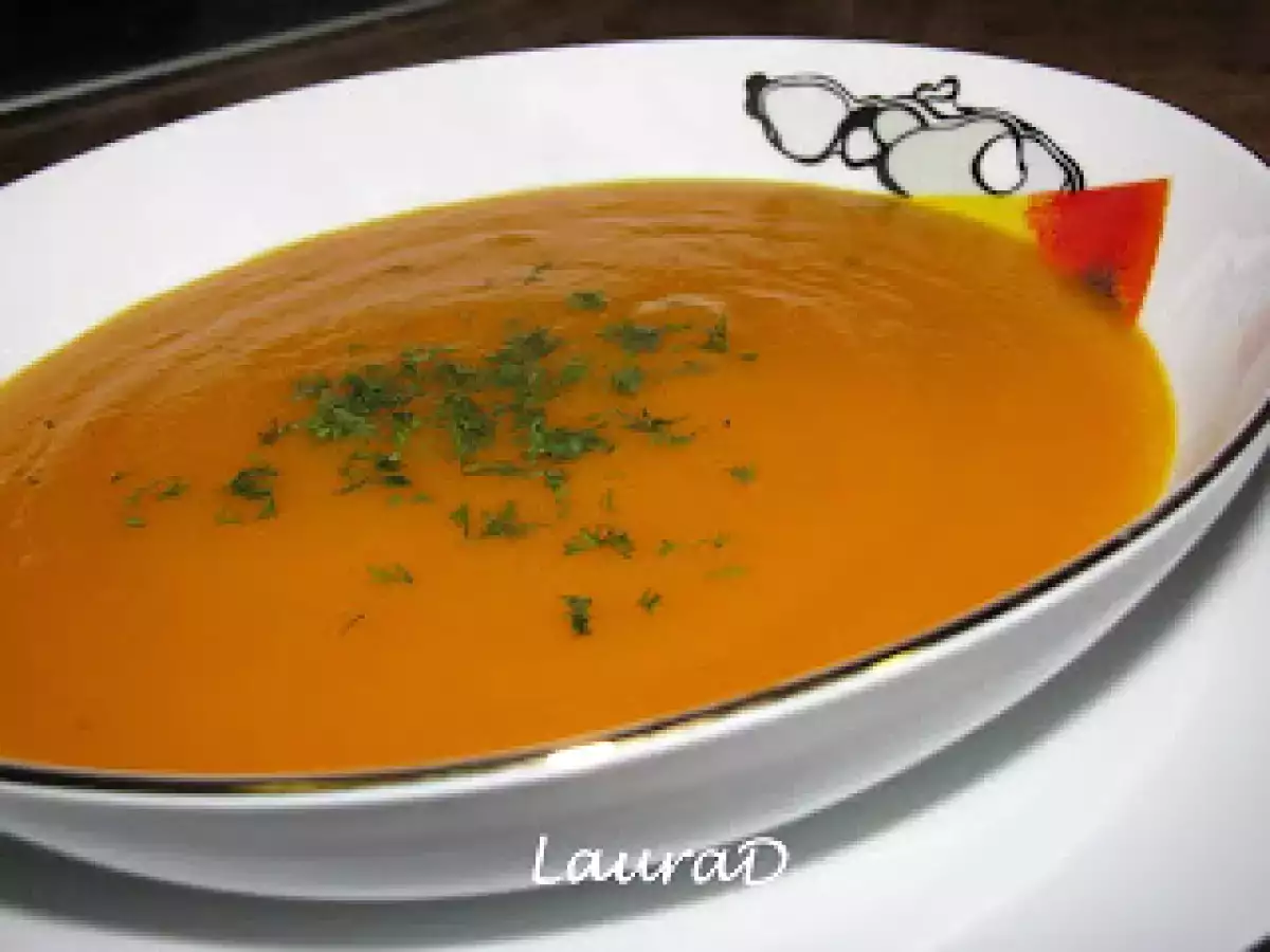 Supa-crema de morcovi si dovleac cu marar PrecedentulUrmătorul Felul principalUșor1 h 15 m Trimite unui prieten Printează pagina Adresează o întrebare autorului Postează o poză cu rețeta gătită de tine Ingrediente 4 1 lingura ulei 1 ceapa, tocata 450 g morcovi decojiti si taiati cubulete 250 g piure de dovleac 1,2 L zeama de supa de legume 1 lingura mararsare si piper, dupa gust