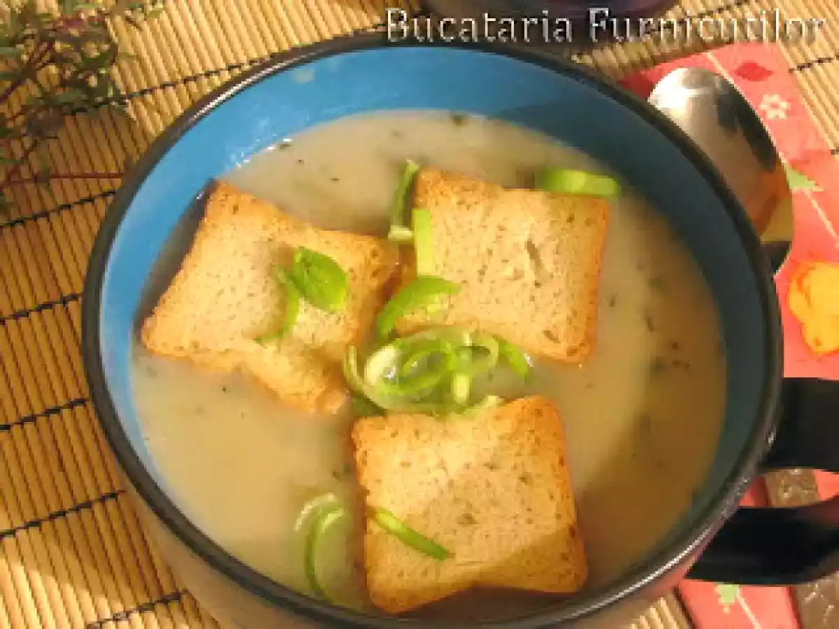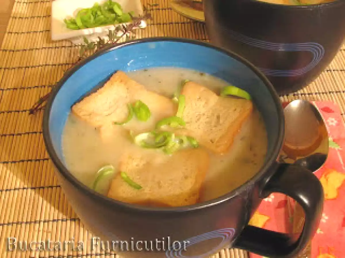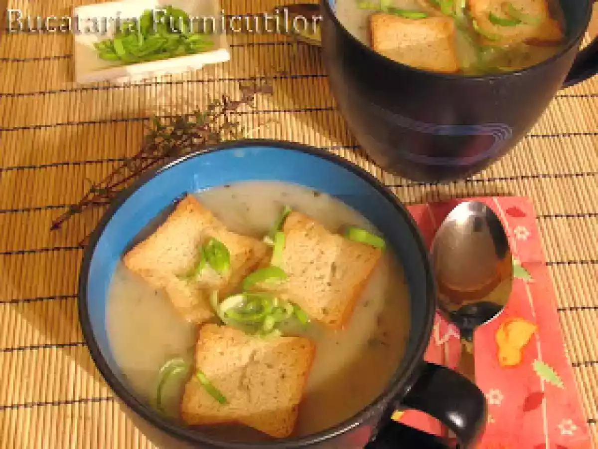 Supa crema de praz PrecedentulUrmătorul Felul principalFoarte ușor40 min Trimite unui prieten Printează pagina Adresează o întrebare autorului Postează o poză cu rețeta gătită de tine Ingrediente 6 3 - 4 fire de praz 4 cartofi 1 ceapa 350 ml lapte 2 frunze de dafin 1 legatura patrunjel 2 linguri ulei sare, piper, cimbru