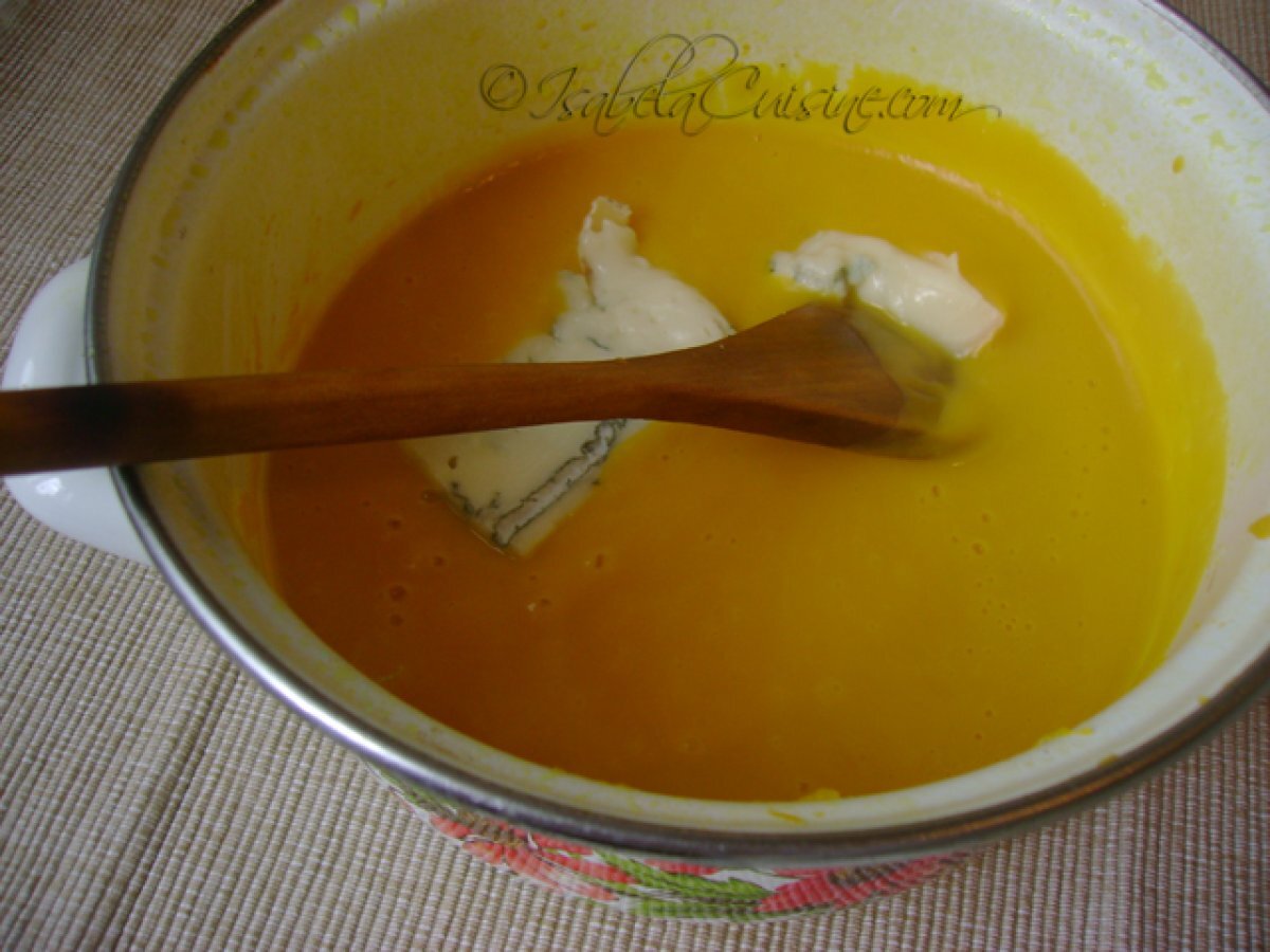 Supa-crema din dovleac si gorgonzola PrecedentulUrmătorul Felul principalFoarte ușor35 min Trimite unui prieten Printează pagina Adresează o întrebare autorului Postează o poză cu rețeta gătită de tine Ingrediente 4 530 g pulpa de dovleac de placinta, taiat cuburi 70 g gorfonzola 50 g unt 1 lingura de ulei de masline 1 ceapa 700 ml supa putina smantana sare, piper