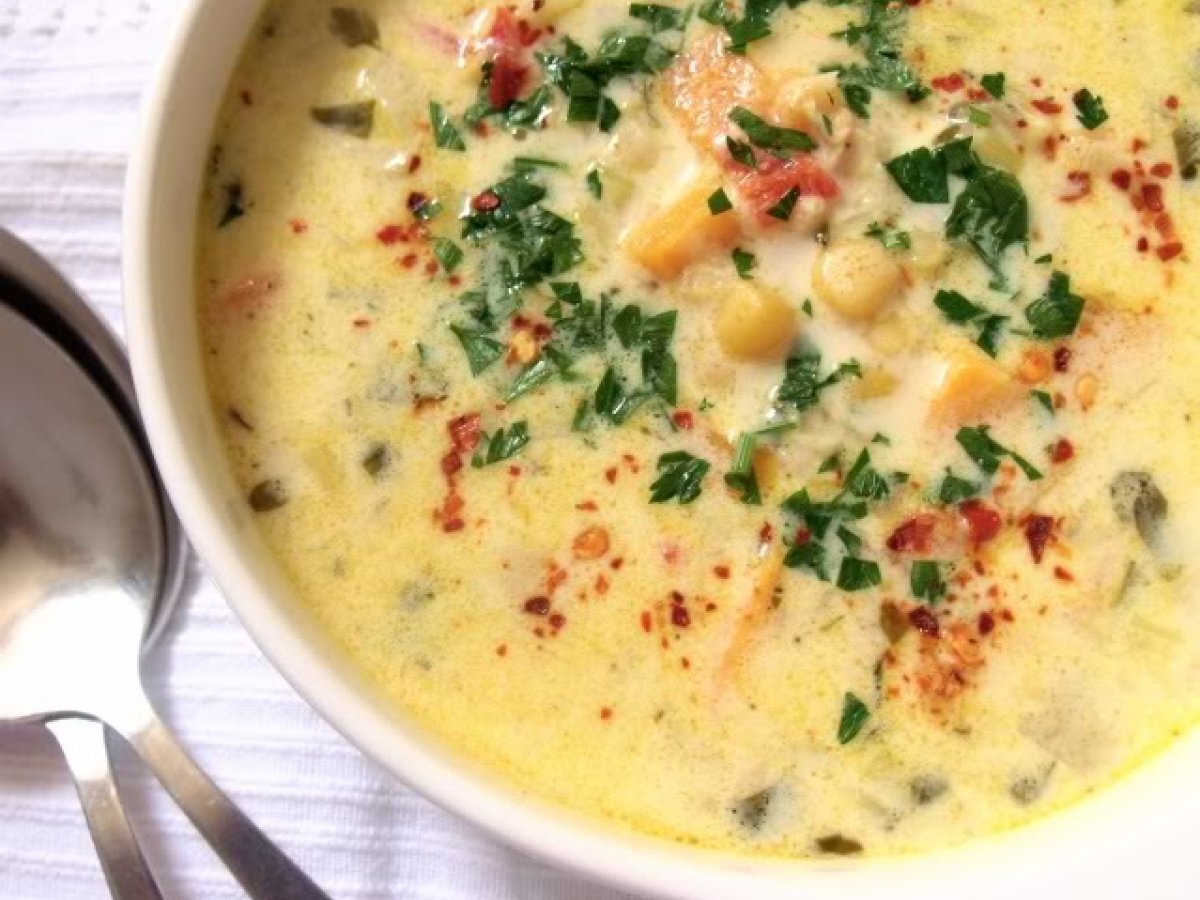 Supa cu cartof dulce si porumb Felul principalFoarte ușor35 min Trimite unui prieten Printează pagina Adresează o întrebare autorului Postează o poză cu rețeta gătită de tine Ingrediente 4 1 ceapa,tocata marunt, 2 catei de usturoi,tocati, 1 praz mediu,tocat , 500 ml iaurt slab, 500 ml supa de legume, 1 cutie cu boabe de porumb,cca 200 grame,scursa de zeama, 1 cartof dulce taiat cuburi mici, 1 buchet de patrunjel,tocat , 2 linguri ulei de masline, sare ,piper,ardei iute pisat,dupa gust.