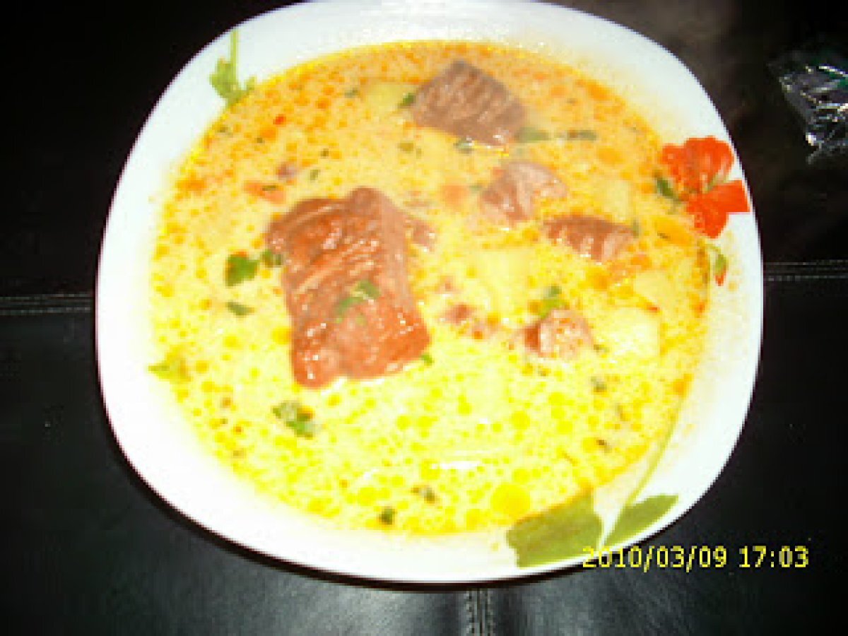 Supa de cartofi cu afumatura Felul principalFoarte ușor40 min Trimite unui prieten Printează pagina Adresează o întrebare autorului Postează o poză cu rețeta gătită de tine Ingrediente 4 6 cartofi mari 1 morcov 1 cepa 3 foi dafin 1 lingura delikat 2 carnati cabanos 1 carnat afumat 1 buc scarita afumata 500 ml lapte patunjel verde