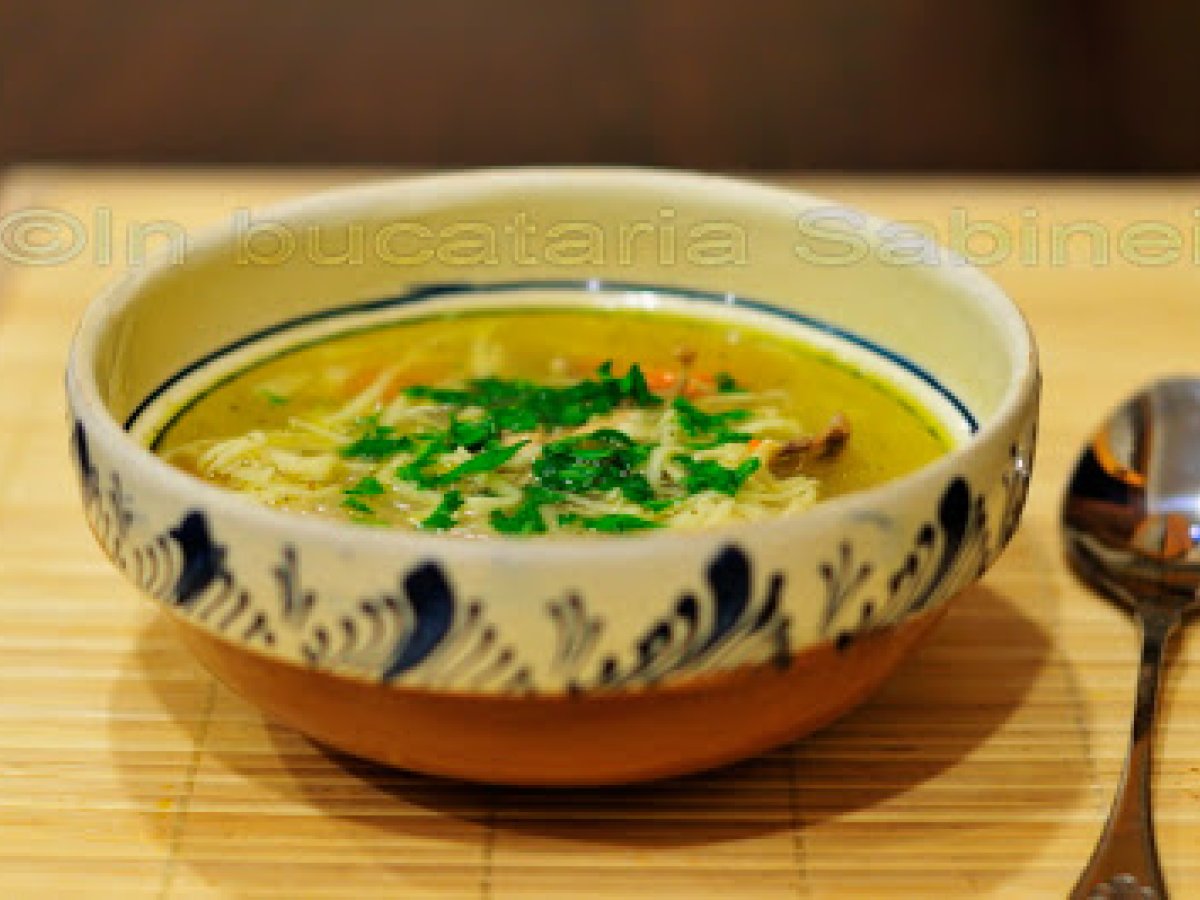 Supa de curcan cu taitei de casa PrecedentulUrmătorul Felul principalFoarte ușor40 min Trimite unui prieten Printează pagina Adresează o întrebare autorului Postează o poză cu rețeta gătită de tine Ingrediente 4 piept de curcan/ pui 2 aripi de curcan/ pui 1 ceapa 1 telina mica 2 morcovi frunze de telina congelate (vezi aici) taietei de casa (1 ou, sare si faina cat cuprinde) sare si piper patrunjel proaspat