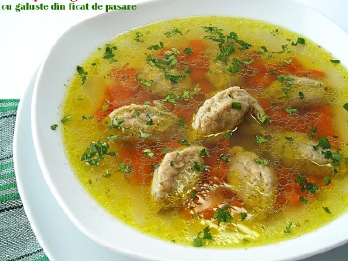 Supa de gaina cu galuste din ficat de pasare PrecedentulUrmătorul Felul principalFoarte ușor35 min Trimite unui prieten Printează pagina Adresează o întrebare autorului Postează o poză cu rețeta gătită de tine Ingrediente 4 1 gaina 2 cepe 2-3 morcov, 1/2 telina potrivita 2 patrunjel 1 pastarnac 1 cub knorr de pasare 1 frunza de dafin piper boabe sare Galuste din picat de pasare: 2-3 ficat de pasare 2 ou* 1 felie de paine 1-2 linguri pesmet 2-3 lg ulei verdeata tocata