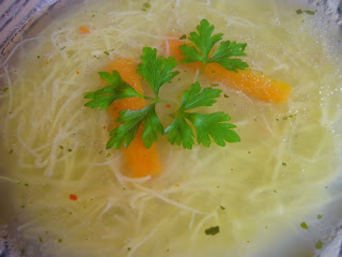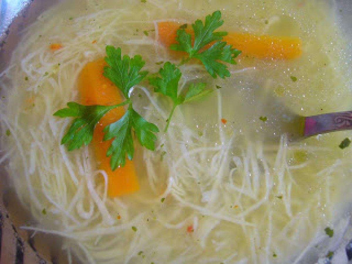 Supa de pui cu taitei de casa PrecedentulUrmătorul Felul principalFoarte ușor35 min Trimite unui prieten Printează pagina Adresează o întrebare autorului Postează o poză cu rețeta gătită de tine Ingrediente 4 1 pui 4 morcovi potriviti 2 patrunjei radacina 1/2 telina mica 1 ceapa 1 catel mic usturoi sare, piper boabe taitei de casa putin knorr delicat frunze patrunjel
