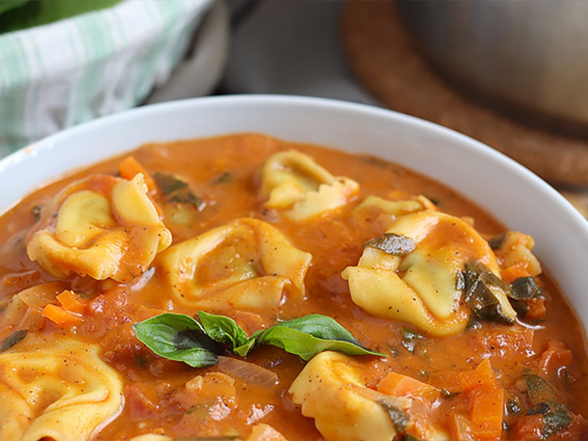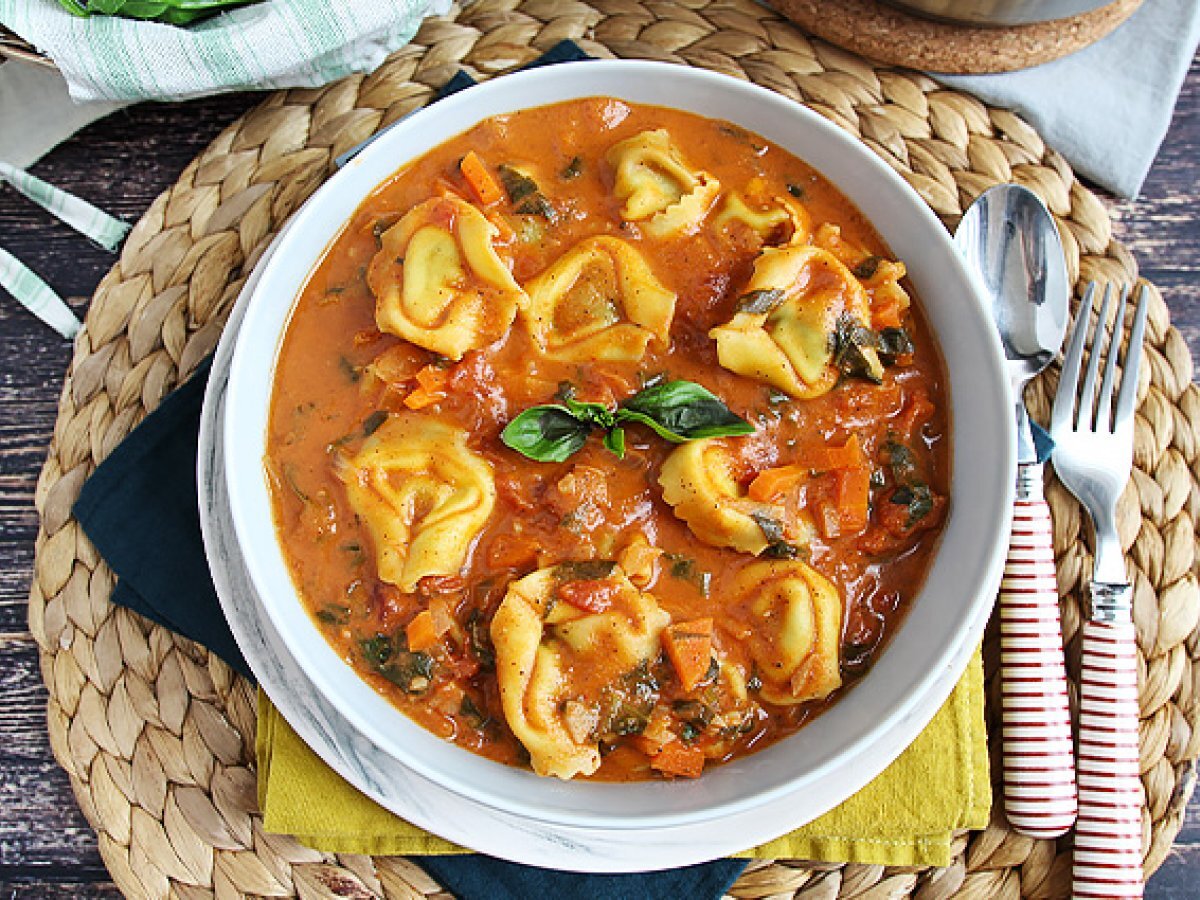 Cautati un fel de mancare reconfortant? Aceasta supa de tortellini ar trebui sa fie pe gustul dvs. P.S: reteta este una picanta, asa ca nu ezitati sa gestionati cantitatea de sos sriracha :-)