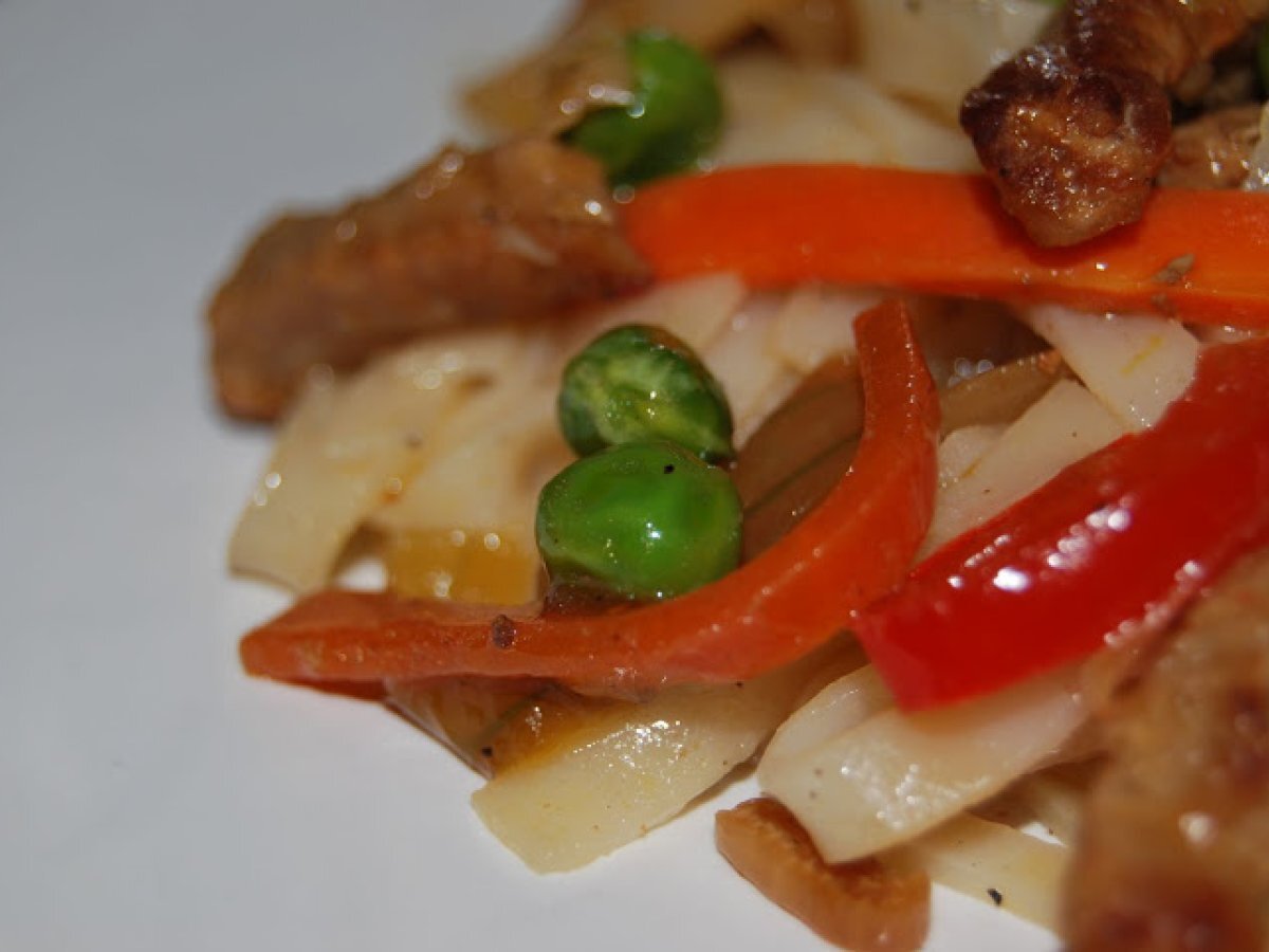 Taitei de orez cu muschiulet de porc PrecedentulUrmătorul Felul principalFoarte ușor40 min Trimite unui prieten Printează pagina Adresează o întrebare autorului Postează o poză cu rețeta gătită de tine Ingrediente 2 500 g taitei de orez 300 g muschi de porc sare, piper 1 ceapa 1 morcov 1 ardei rosu 50 g mazare congelata 1/2 sticluta sos de soia 1 lingura amidon