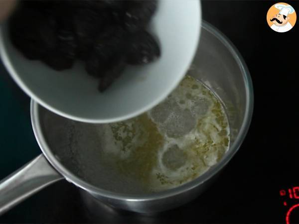 Intr-o cratita adaugați untul, zaharul, sare si apa. Cand amestecul fierbe, adaugati prunele. Amestecati, acoperiti si fierbeti la foc mic timp de 15 minute.