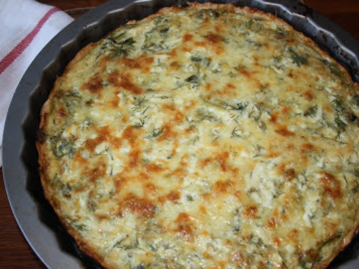 Tarta cu ceapa verde PrecedentulUrmătorul Felul principalFoarte ușor55 min Trimite unui prieten Printează pagina Adresează o întrebare autorului Postează o poză cu rețeta gătită de tine Ingrediente 8 3 legaturi de ceapa dovlecel fenicul marar 200g faina, 100g de unt, un ou, 3 linguri de lapte sare un pic de cimbru ceapa verde, dovlecelul feniculul ulei de masline unt 2 catei de usturoi tocati, sare&piper, 3 oua cu 3 linguri de smantana, o bucatica de telemea rasa adaugat mararul tocat. cascaval