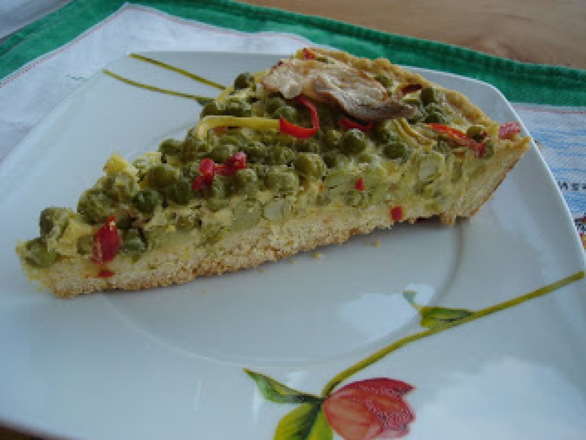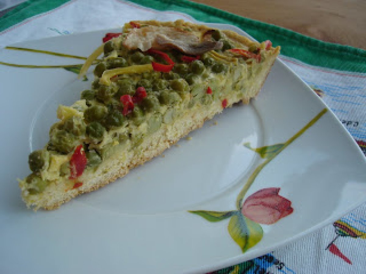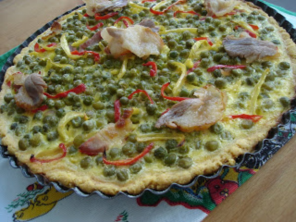 Tarta cu malai si mazare votează acum PrecedentulUrmătorul Felul principalFoarte ușor1 h 20 m Trimite unui prieten Printează pagina Adresează o întrebare autorului Postează o poză cu rețeta gătită de tine Ingrediente 8 175 g faina de grau, 100 g faina de malai, 100 g unt, 1/2 pachet praf de copt, 4 oua, 2 ardei rosii capia, 150 g smantana, 600 g mazare, 50 g sunca afumata, 1 praf de nucsoara, sare, piper, cateva frunze de busuioc proaspat pt.decor.
