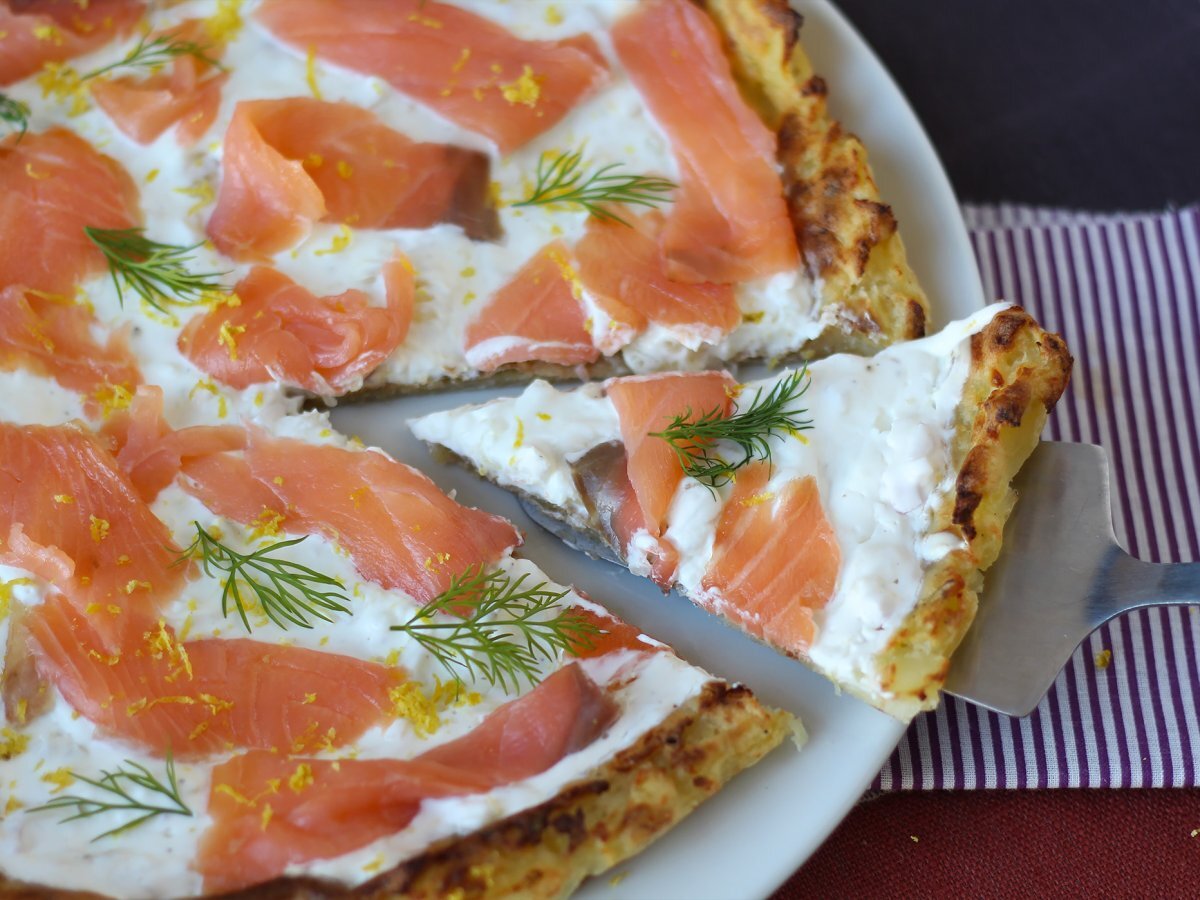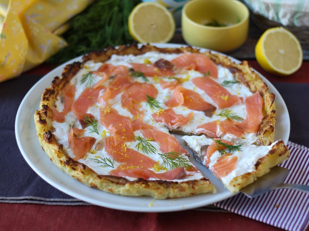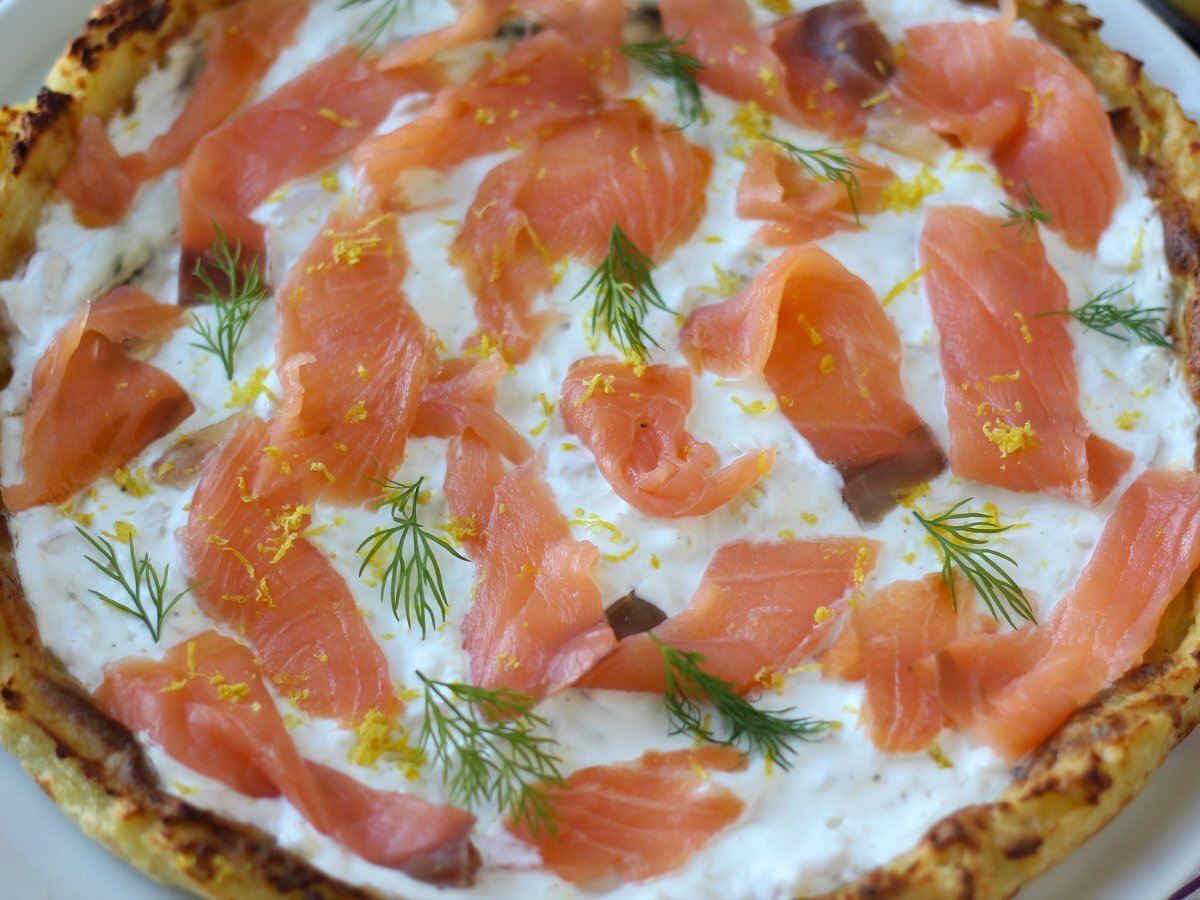 Nu mai aveți în frigider aluat de foitaj pentru tarta dvs.? Nu intrați în panică! Încearcați această versiune originală făcută cu cartofi și somon afumat! Luați-vă adio de la aluatul clasic, aici cartofii formează o bază crocantă, care se topește în gură. Perfectă pentru o cină ușoară sau un brunch gourmet, de exemplu (tăiată în felii mici), această rețetă cu siguranță îți va încânta oaspeții ;)