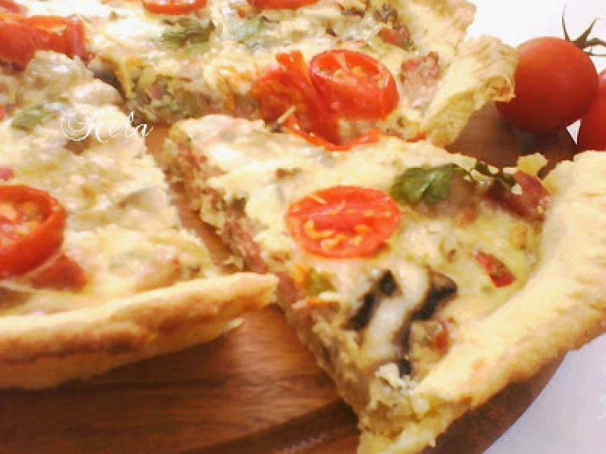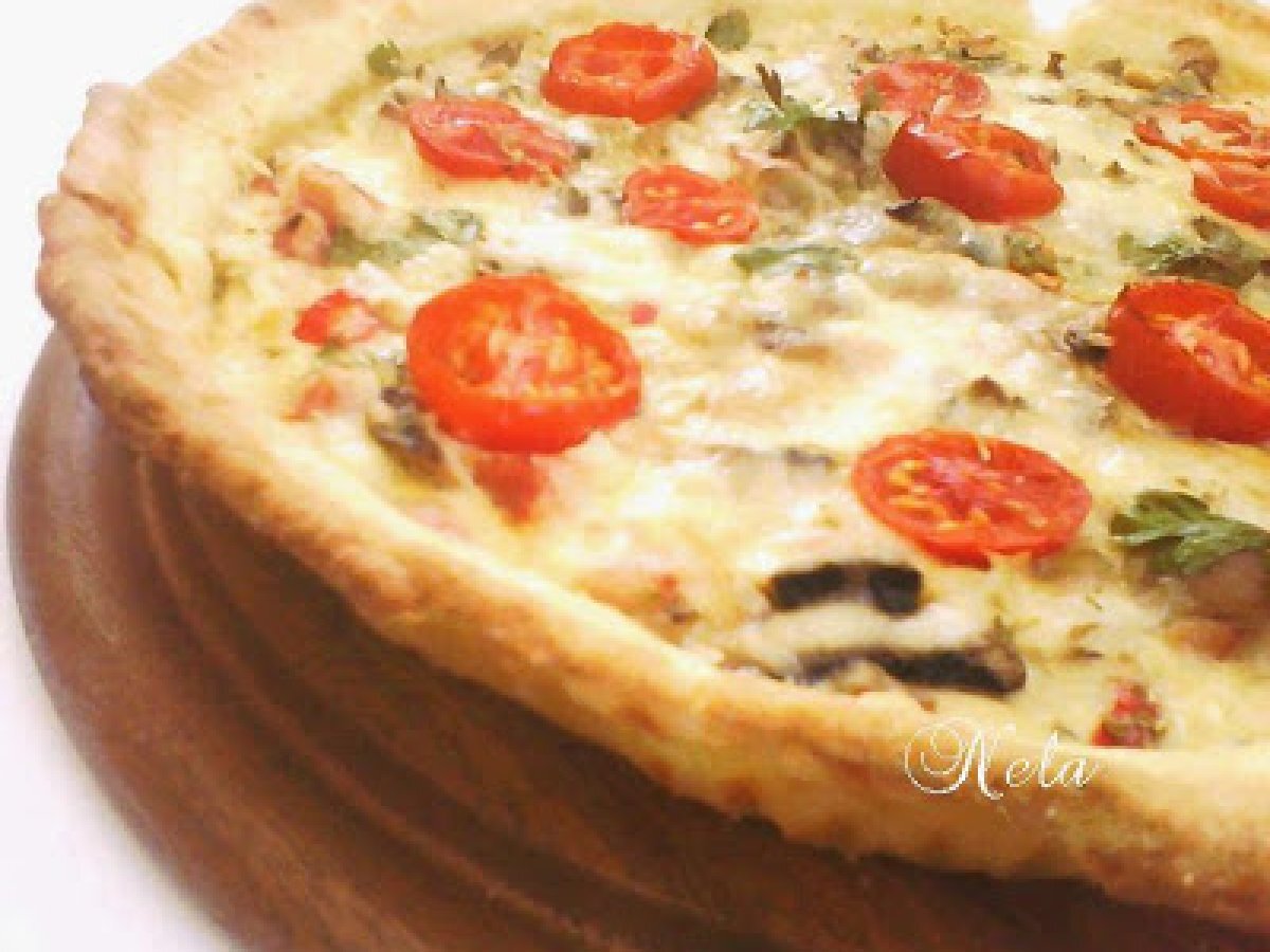 Tarta cu sunca si ciuperci PrecedentulUrmătorul Felul principalFoarte ușor50 min Trimite unui prieten Printează pagina Adresează o întrebare autorului Postează o poză cu rețeta gătită de tine Ingrediente 8 200 g sunca 200 g cascaval 150 g ciuperci 2 cepe 1 ardei un ou o rosie 2 linguri smantana sare ,piper,oregano si cateva fire de patrunjel
