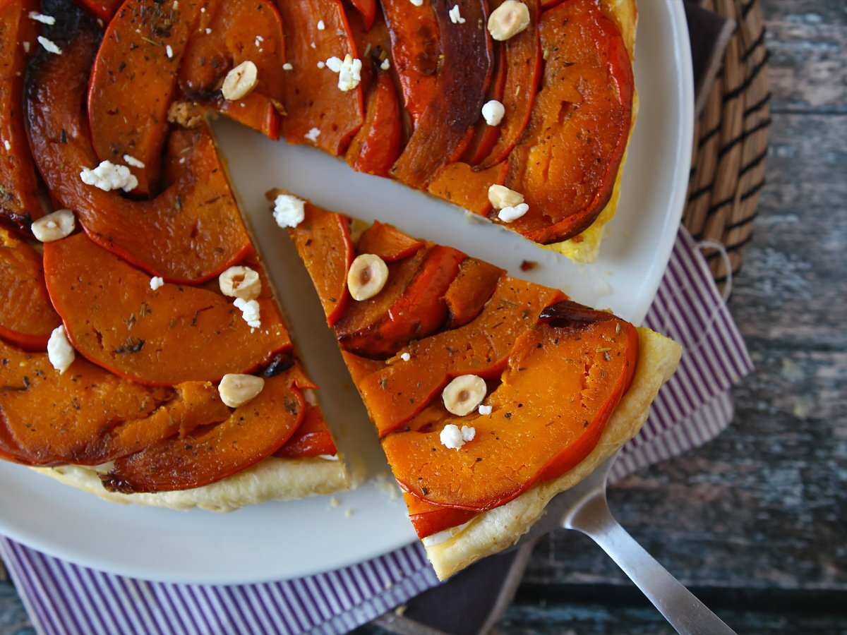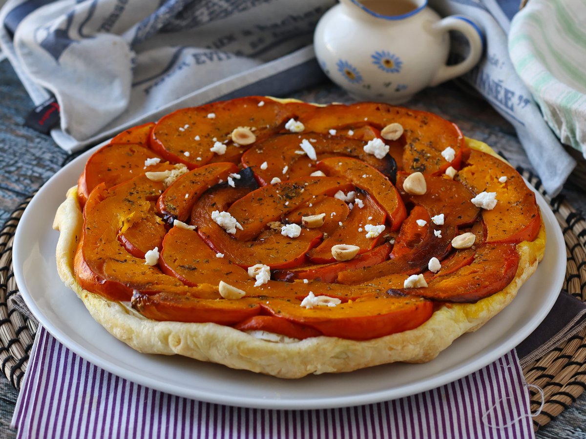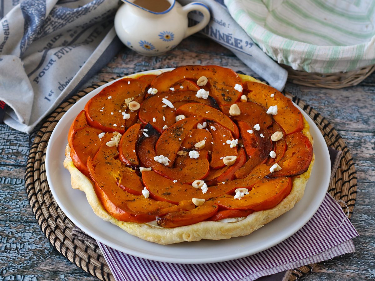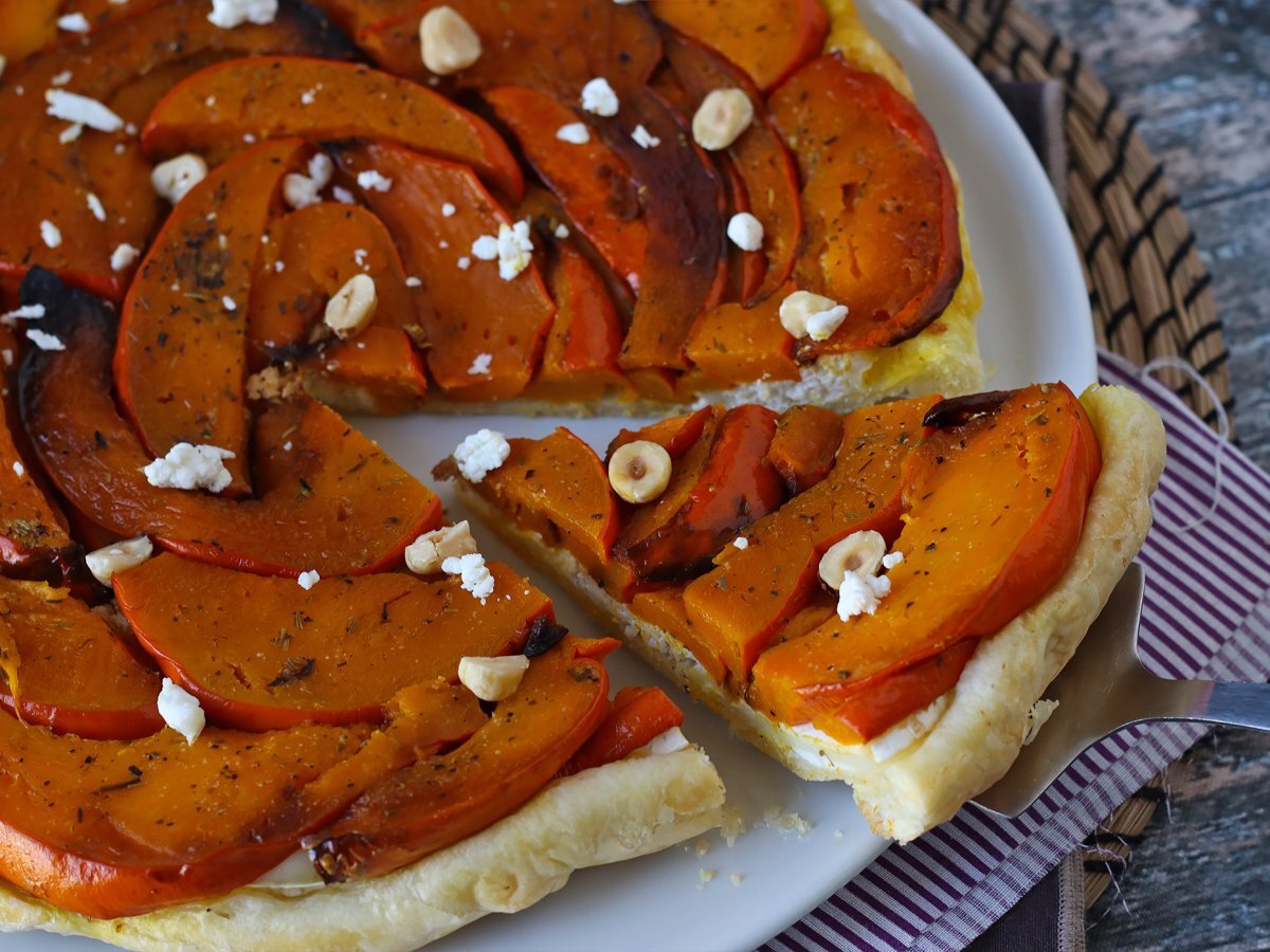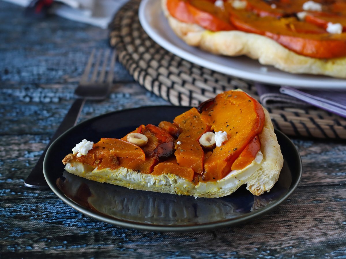Lasă-te tentat de această tartă tatin cu dovleac, brânză de capră și miere, un adevărat deliciu de toamnă! Dovleacul care se topește în gură, brânza de capră cremoasă și atingerea de miere dulce se combină perfect pentru un rezultat deopotrivă dulce și savuros. Această tartă răsturnată este ideală pentru o masă reconfortantă cu o salată, de exemplu. Și cu câteva alune prăjite pentru crocant, cu siguranță va fi un hit! Simplu de preparat și irezistibilă direct din cuptor, această rețetă este perfectă pentru a savura aromele sezonului :-)