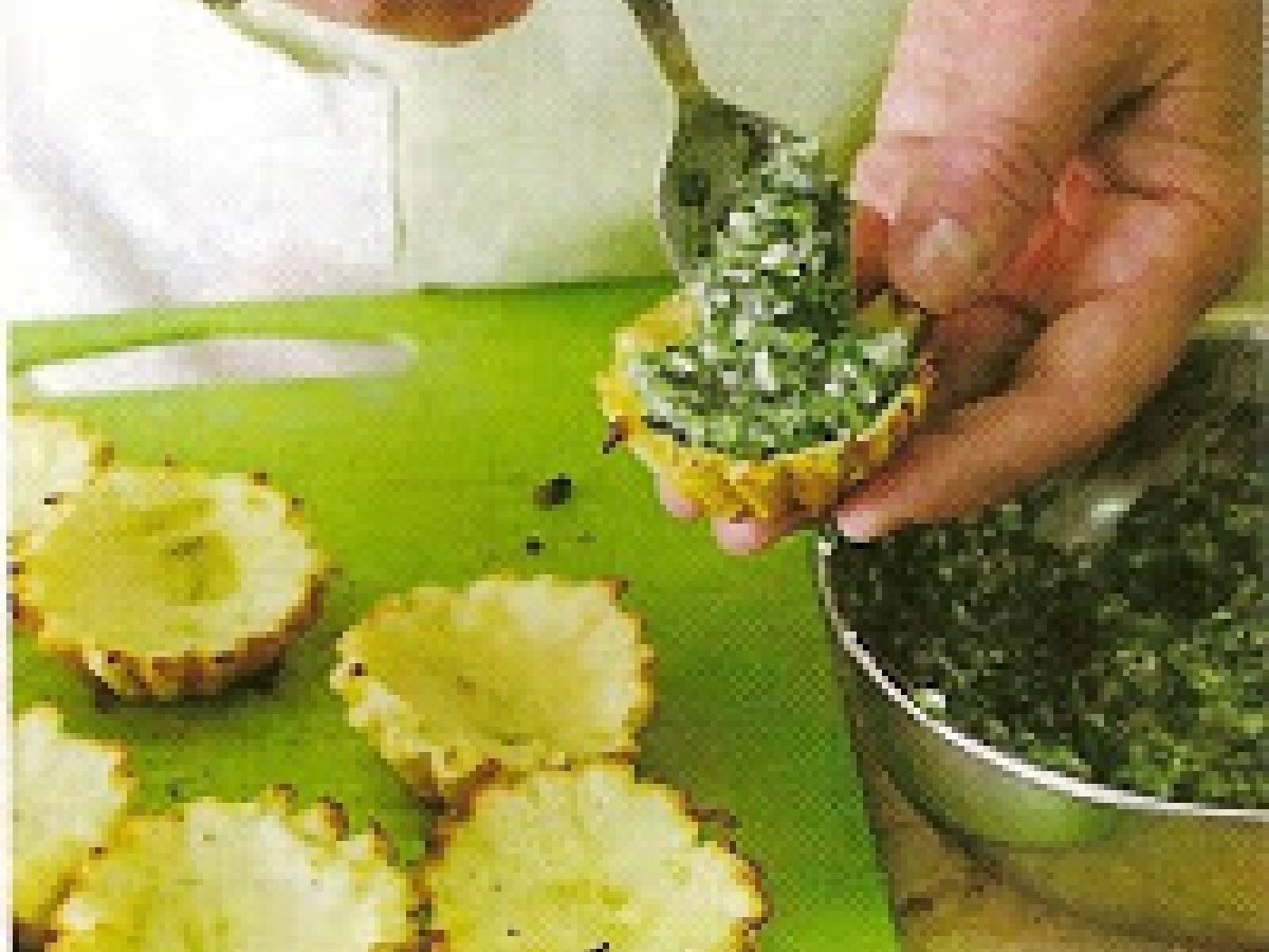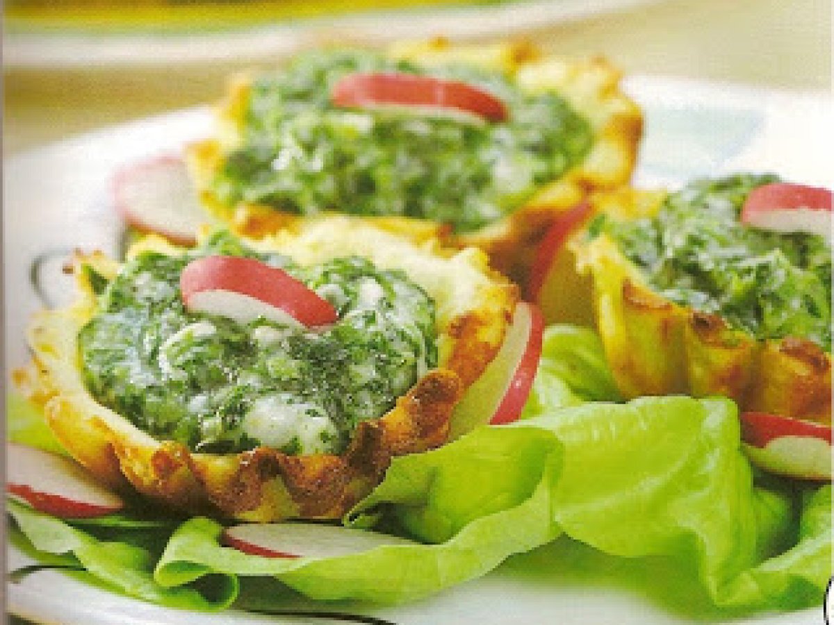 Tarte din cartofi cu spanac PrecedentulUrmătorul Felul principalFoarte ușor40 min Trimite unui prieten Printează pagina Adresează o întrebare autorului Postează o poză cu rețeta gătită de tine Ingrediente 4 Pentru aluat ai nevoie de: 4 cartofi, 50 ml lapte, 1 lingura unt, 2 linguri faina, 3 oua, sare,piper Pentru umplutura ai nevoie de: 300 g spanac, 1 lingura faina, 1 lingura unt, 100 ml lapte, 50 g cascaval, sare,piper.