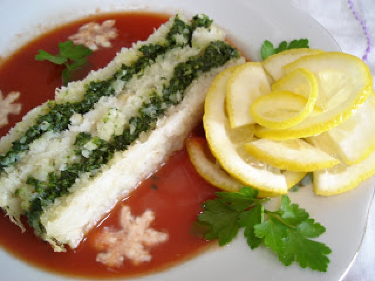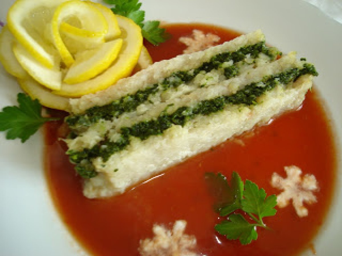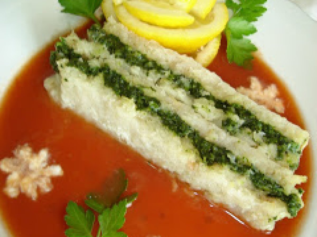 Terina de peste cu spanac PrecedentulUrmătorul Felul principalFoarte ușor1 oră Trimite unui prieten Printează pagina Adresează o întrebare autorului Postează o poză cu rețeta gătită de tine Ingrediente 4 Pentru terina: 400 g peste alb,fara oase, 2 albusuri de ou, 150 g spanac, sare, piper alb. Pentru sos si decor: bulion, smantana, lamaie, patrunjel.