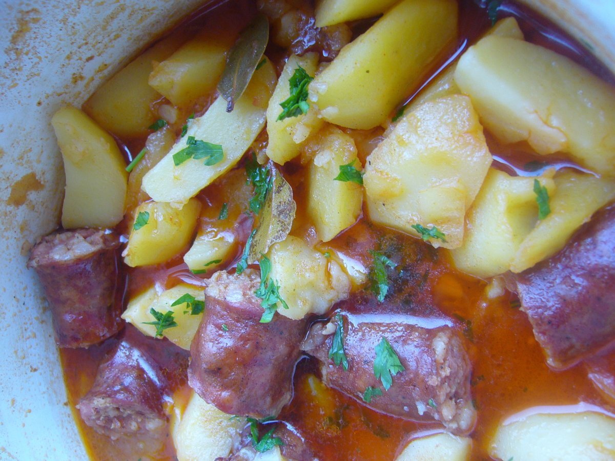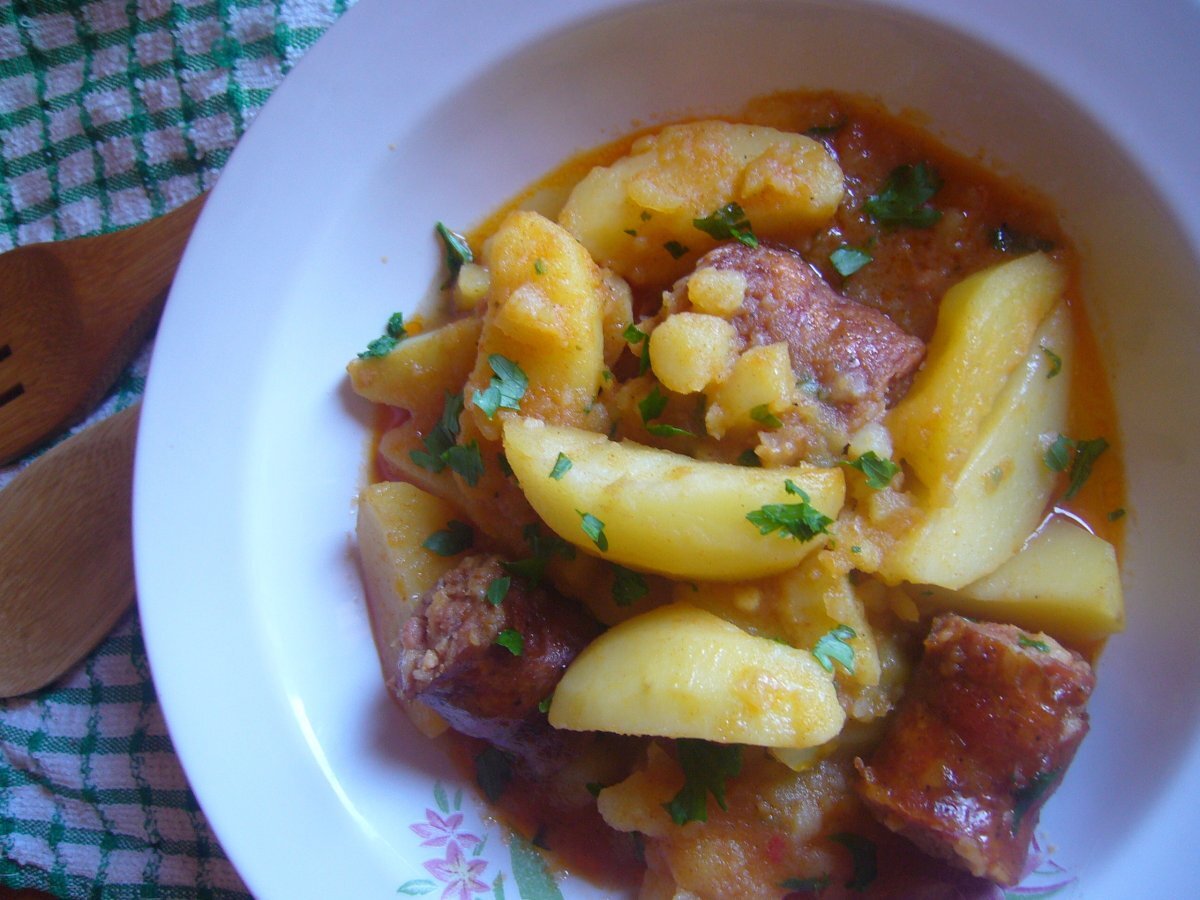 Tocanita de cartofi cu carnati de casa PrecedentulUrmătorul Felul principalFoarte ușor40 min Trimite unui prieten Printează pagina Adresează o întrebare autorului Postează o poză cu rețeta gătită de tine Ingrediente 6 1 kg cartofi (noi), 300-400 carnati de casa afumati, 1 ceapa, 1 ardei gras verde, sare, piper, boia de ardei, foi de dafin, patrunjel verde.