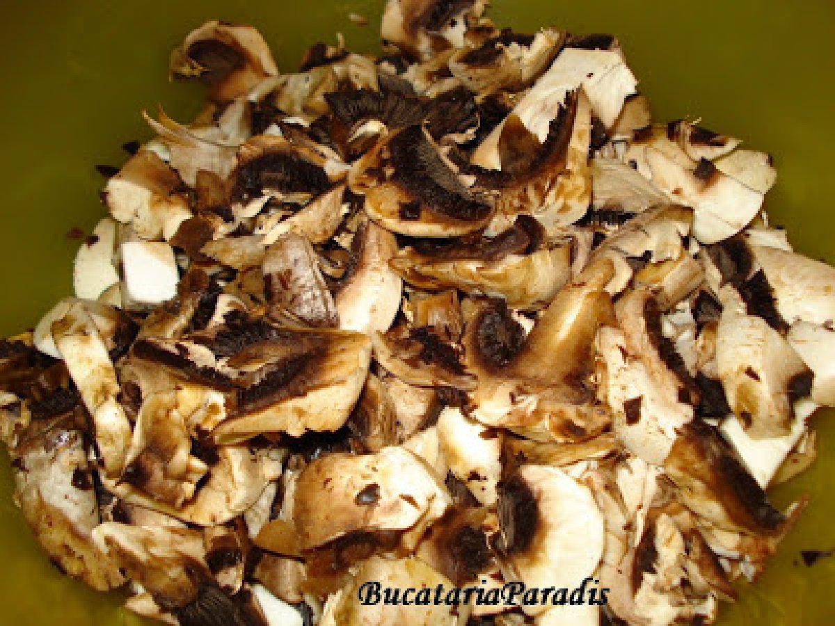 Tocanita de ciuperci a la bunica. PrecedentulUrmătorul Felul principalFoarte ușor50 min Trimite unui prieten Printează pagina Adresează o întrebare autorului Postează o poză cu rețeta gătită de tine Ingrediente 2 1 kg ciuperci 200 g ceapa 150 ml ulei 1-2 rosii(obtional) 30 g usturoi sare,piper 1 foaie de dafin 2 linguri bulion 1 lingurita de faina.