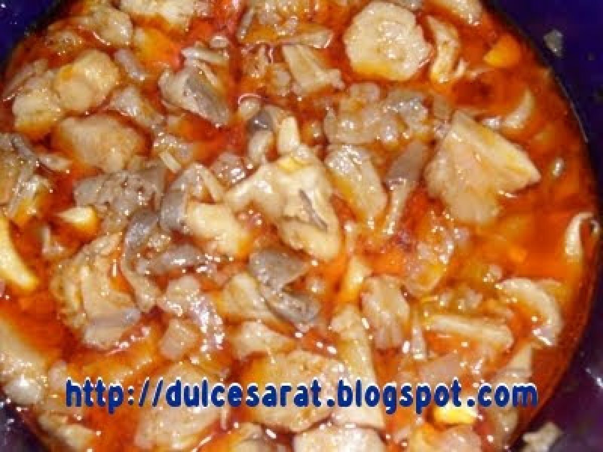 Tocanita de ciuperci pleurotus PrecedentulUrmătorul Felul principalFoarte ușor40 min Trimite unui prieten Printează pagina Adresează o întrebare autorului Postează o poză cu rețeta gătită de tine Este o mancare de post buna si hranitoare. Ingrediente 2 500 g ciuperci 1 ceapa 150 ml ulei 2 lingurite boia 1 lingurita piper 1 lingurita vegeta 2 catei usturoi sare 1 legatura patrunjel verde.