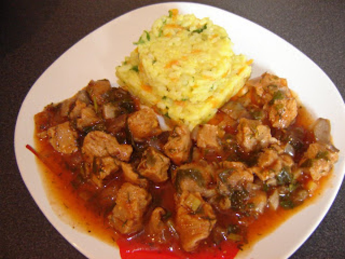 Tocanita de soia cu garnitura de orez cu curry PrecedentulUrmătorul Felul principalFoarte ușor55 min Trimite unui prieten Printează pagina Adresează o întrebare autorului Postează o poză cu rețeta gătită de tine Ingrediente 2 Tocanita: 200 g soia cubulete 200 g ciuperci 3 cepe rosii mici 3 fire ceapa verde 1 legatura marar patrunjel verde 4 linguri bulion sare, piper, boia condiment de gulas Garnitura de orez: 1 cana orez 3 cani supa de legume 2 morcovi 1 ceapa mica 1 lingura curry 100 g cascaval