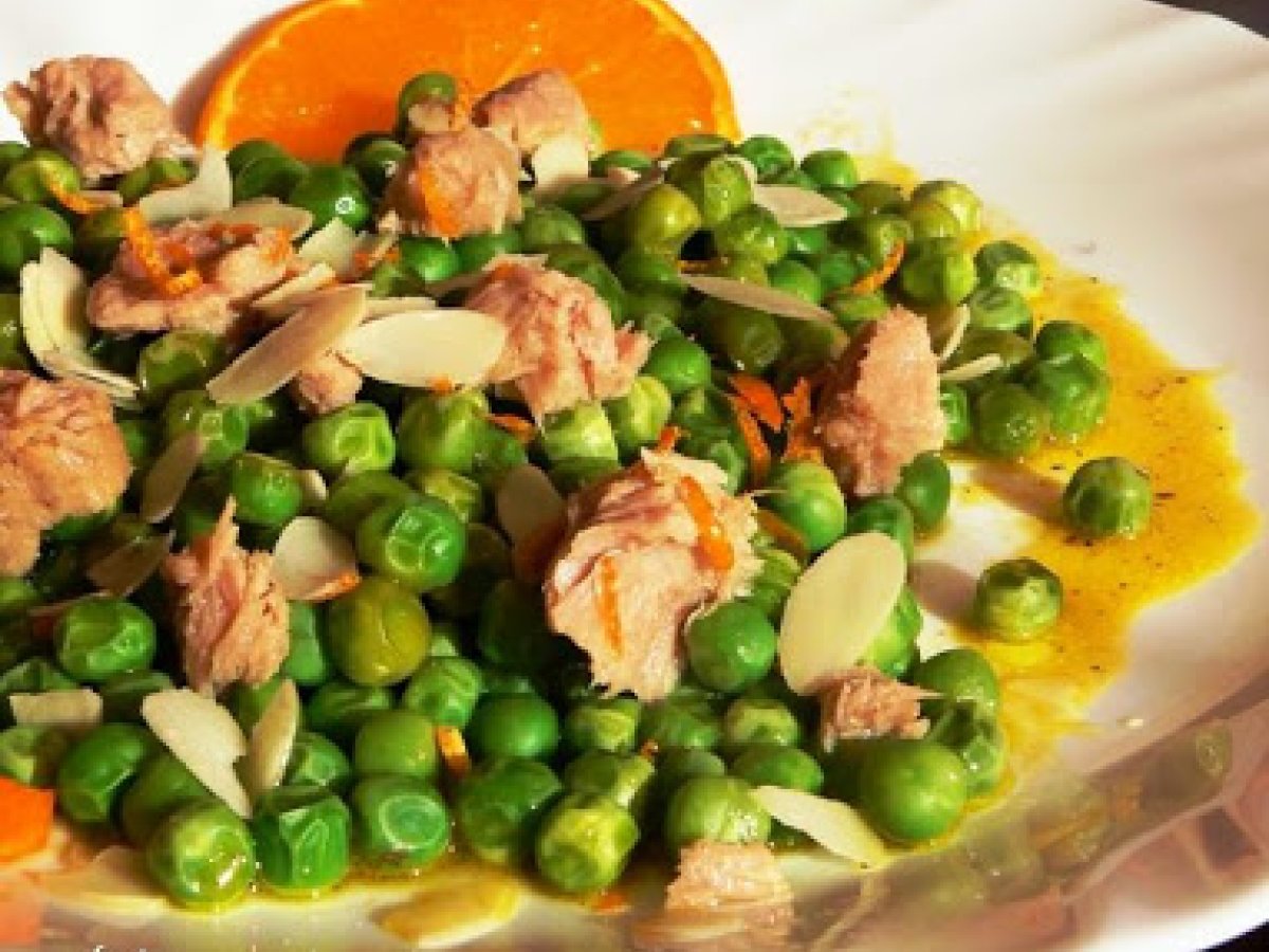 Ton cu mazare si sos de portocala PrecedentulUrmătorul Felul principalFoarte ușor50 min Trimite unui prieten Printează pagina Adresează o întrebare autorului Postează o poză cu rețeta gătită de tine Ingrediente 2 o conserva mare de ton in ulei 400 g mazare congelata coaja si zeama unei portocale mari 30 ml ulei 2 catei de usturoi sare,piper fulgi de migdale