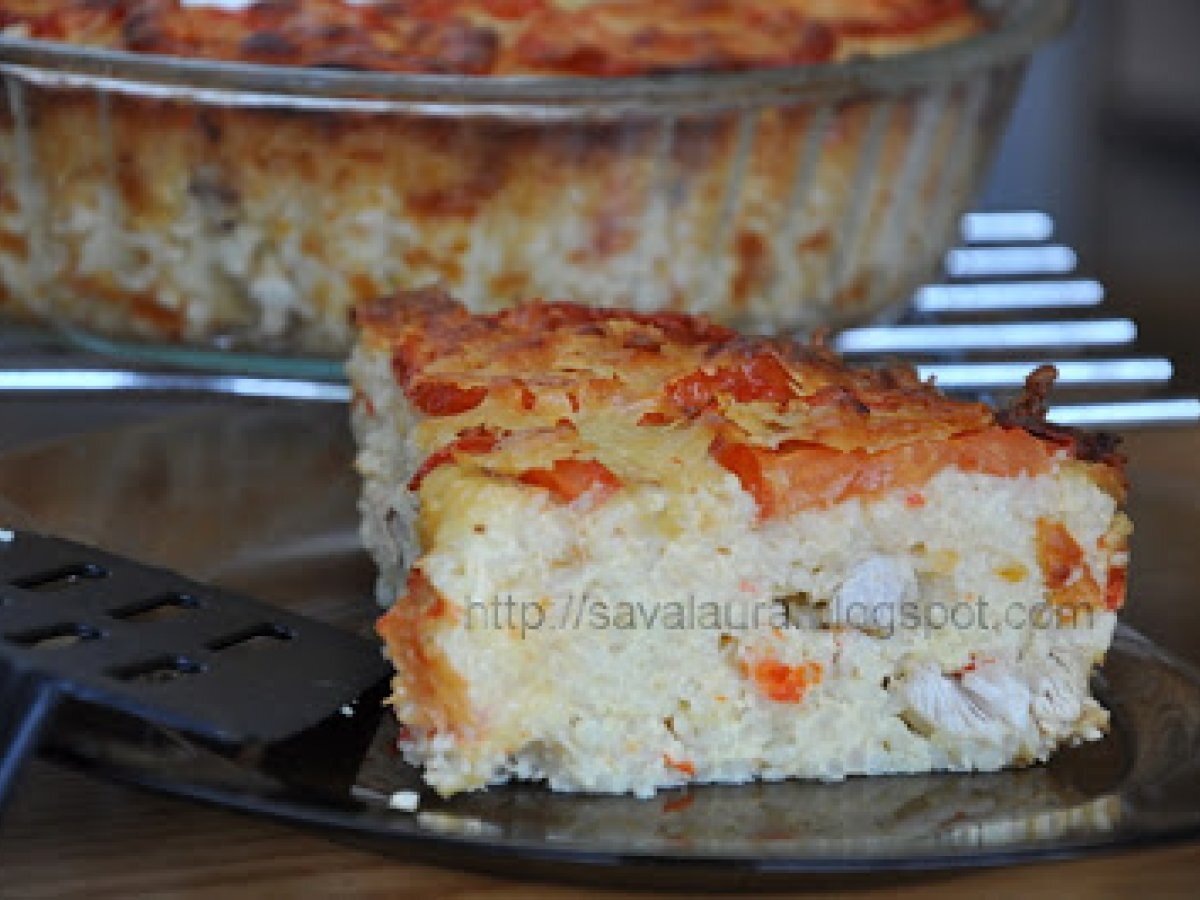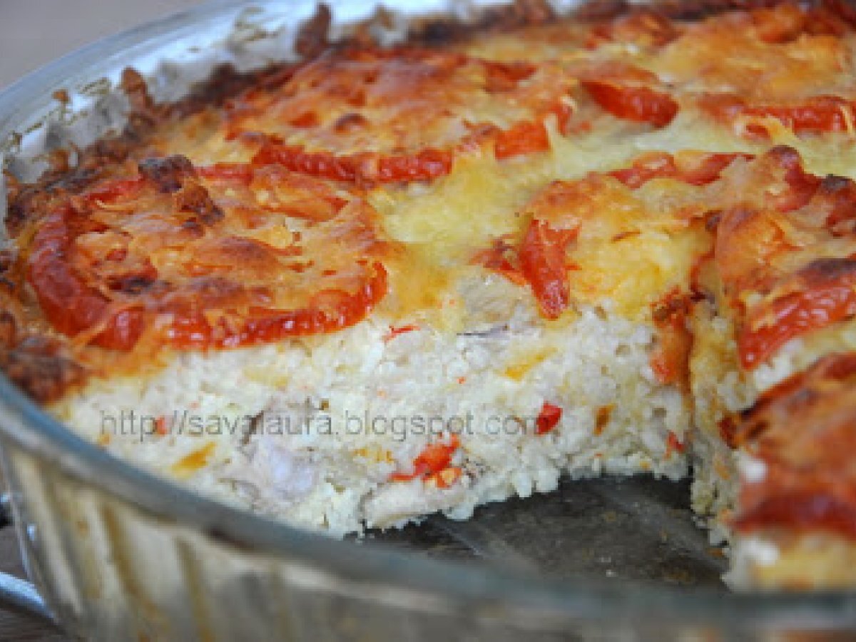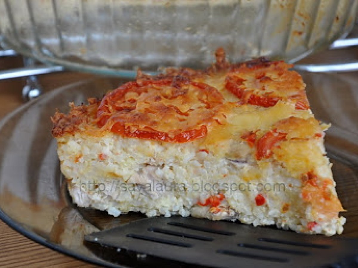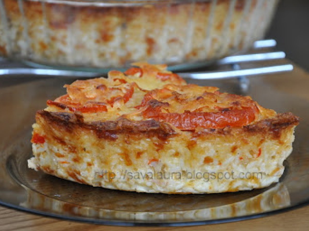 Tort de orez cu carne de curcan PrecedentulUrmătorul Felul principalFoarte ușor55 min Trimite unui prieten Printează pagina Adresează o întrebare autorului Postează o poză cu rețeta gătită de tine Ingrediente 8 1 ardei gras verde 1 ardei gras rosu 1 ceapa 400-450 g. carne de curcan 3 linguri de ulei 500 g. orez sare, piper boia dulce 4 oua 150 g. smantana 200 g. cascaval ras 2 rosii patrunjel tocat
