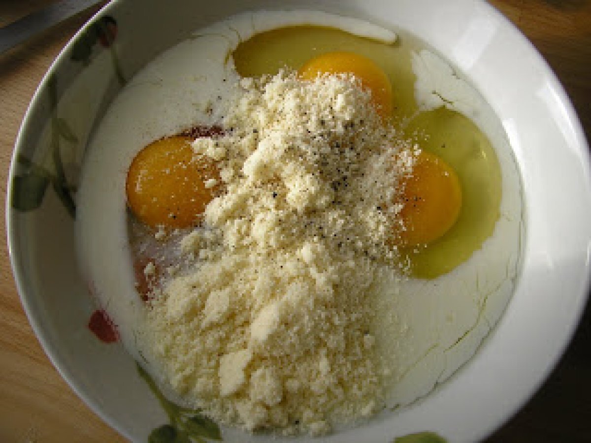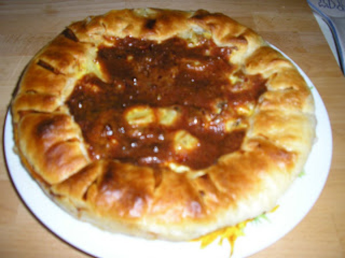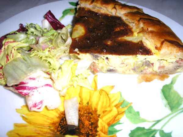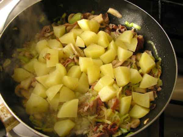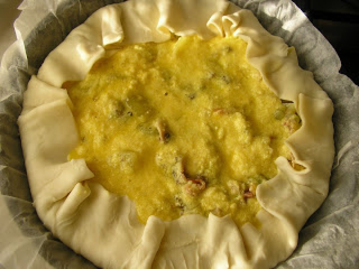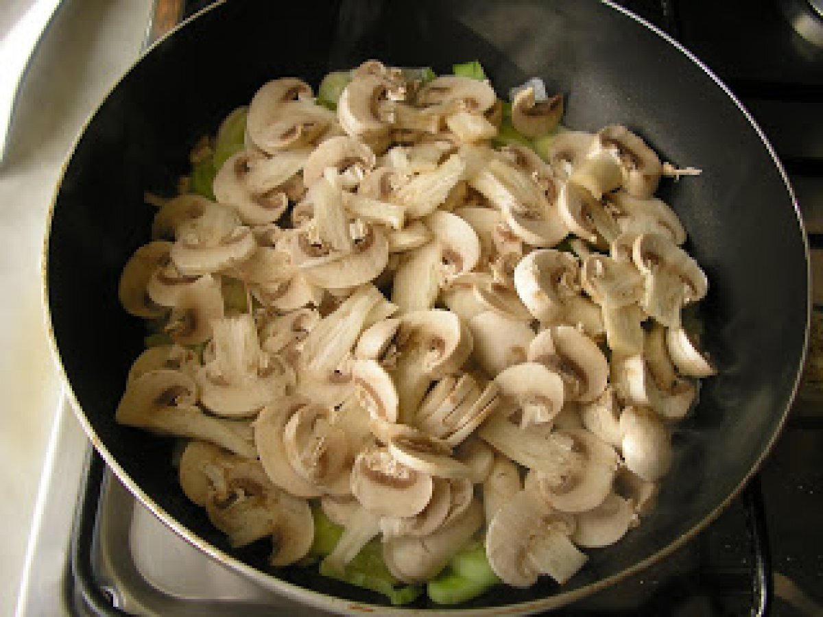 Torta salata con patate e funghi (tarta sarata cu cartofi si ciuperci) PrecedentulUrmătorul Felul principalFoarte ușor1 oră Trimite unui prieten Printează pagina Adresează o întrebare autorului Postează o poză cu rețeta gătită de tine Ingrediente 4 1 foaie de aluat 4 cartofi mici, 200 g ciuperci 1 praz 3 oua 100 g branza rasa 50 g sunca afumata 1 cescuta de lapte ulei sare si piper.