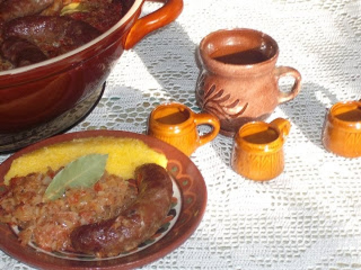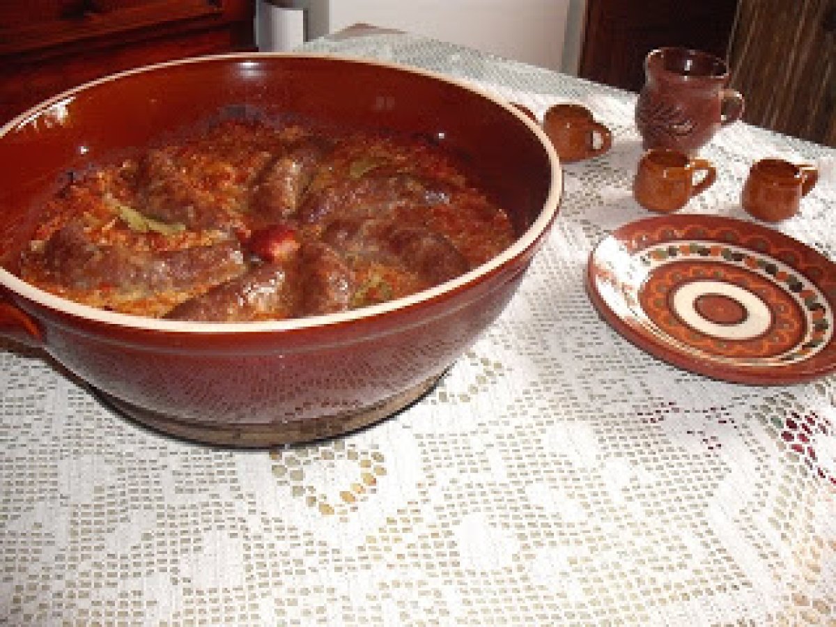 Varza calita cu carnati de casa,in vas ceramic PrecedentulUrmătorul Felul principalFoarte ușor50 min Trimite unui prieten Printează pagina Adresează o întrebare autorului Postează o poză cu rețeta gătită de tine Ingrediente 4 2 kg 2,5 kg de varza murata cca 1 kg carnati de casa (sau afumati ,de cumparat) 0 ceapa potrivita 0 lingura untura de porc 2-3 foi de dafin o lingura boia dulce de ardei un praf de cimbru uscat(dupa gust) cateva seminte de chimen(dupa gust) piper macinat 200 ml suc de rosii 2 linguri de pasta de tomate desfacute cu apa