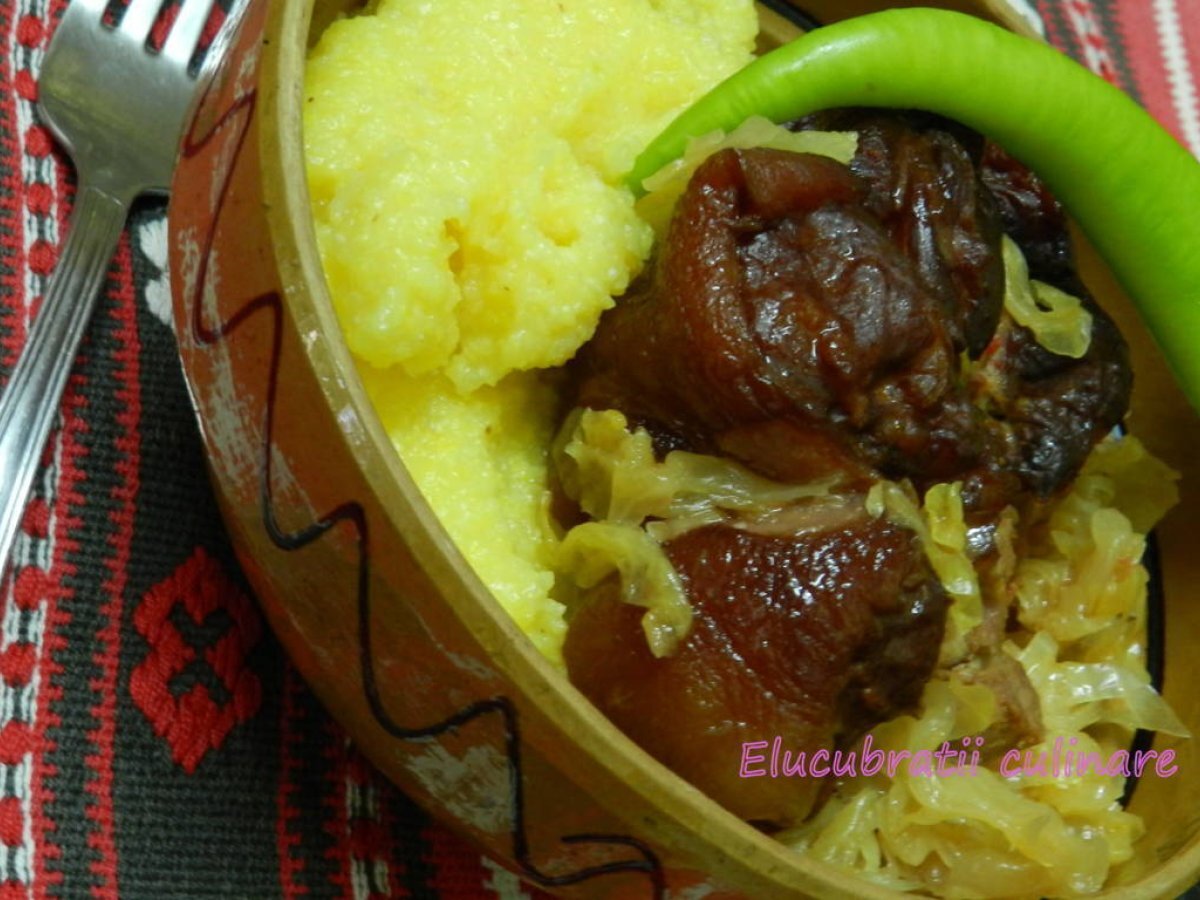 Varză cu ciolan afumat PrecedentulUrmătorul Felul principalUșor1 h 45 m Trimite unui prieten Printează pagina Adresează o întrebare autorului Postează o poză cu rețeta gătită de tine oricand nu tinem post... Ingrediente 4 1 kg varză murată, 1 kg ciolan afumat fără os, 2 linguri boia dulce, 1 ceapă, 2 linguri ulei, 200 ml suc de roșii, 100 ml apă, 10 boabe piper negru, 1 legătură mărar.