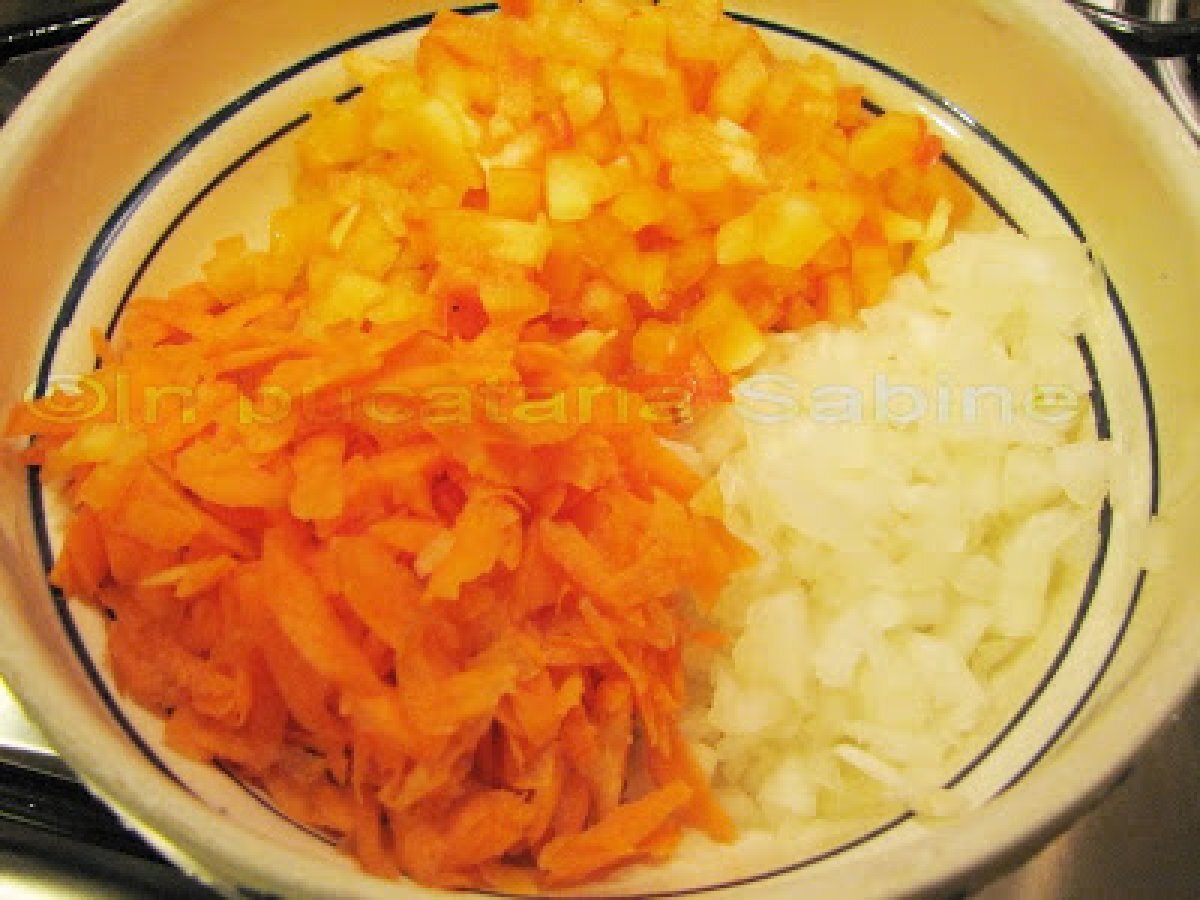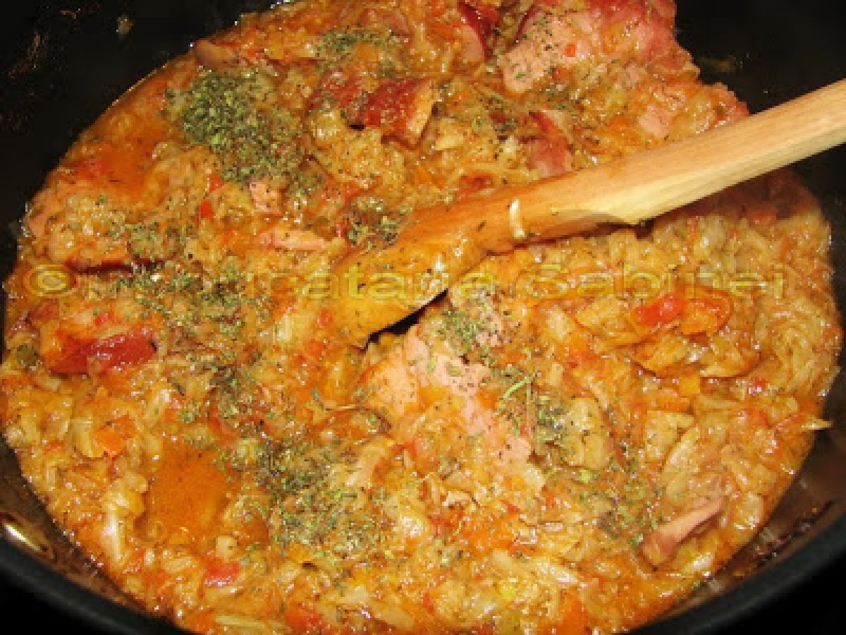 Varza cu ciolan afumat PrecedentulUrmătorul Felul principalFoarte ușor1 oră Trimite unui prieten Printează pagina Adresează o întrebare autorului Postează o poză cu rețeta gătită de tine Ingrediente 4 o varza romaneasca (potrivita) o bucata de ciolan afumat 2 morcovi 1 ardei gras 2 cepe mici 4 rosii mari 4 linguri de ulei sare, piper si boia marar proaspat cimbru