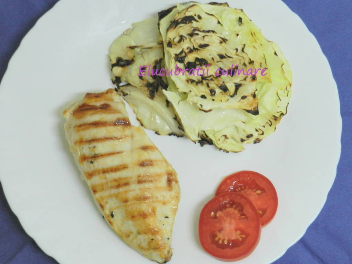 Varză la grătar cu piept de pui PrecedentulUrmătorul Felul principalFoarte ușor20 min342 Kcal Trimite unui prieten Printează pagina Adresează o întrebare autorului Postează o poză cu rețeta gătită de tine varza la gratar poate fi garnitura pentru multe fripturi ;) Ingrediente 2 2 buc piept de pui 1 varză mică Sare Piper Ulei de măsline Cost estimat: 4.11Euros€ (2.05€/porție)