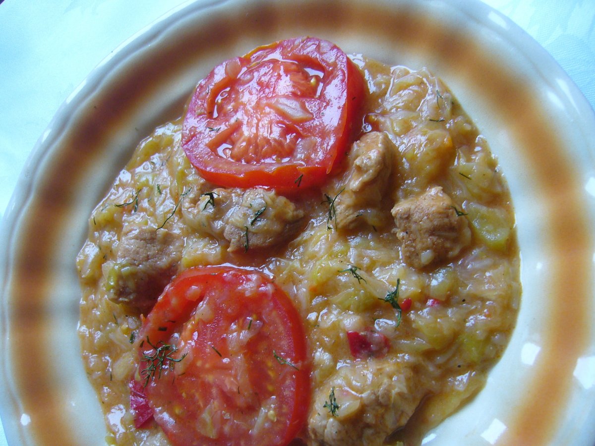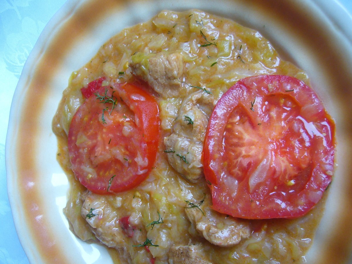 Varza scazuta cu carne de porc PrecedentulUrmătorul Felul principalUșor1 h 20 m Trimite unui prieten Printează pagina Adresează o întrebare autorului Postează o poză cu rețeta gătită de tine Ingrediente 6 1/2 kg pulpa de porc, 1 ceapa, 1 varza mica, 2-3 lg de ulei, sare, piper, boia de ardei dulce, marar, 1 lg faina, 150 ml bulion, 1-2 rosii, 1 ardei capia rosu.