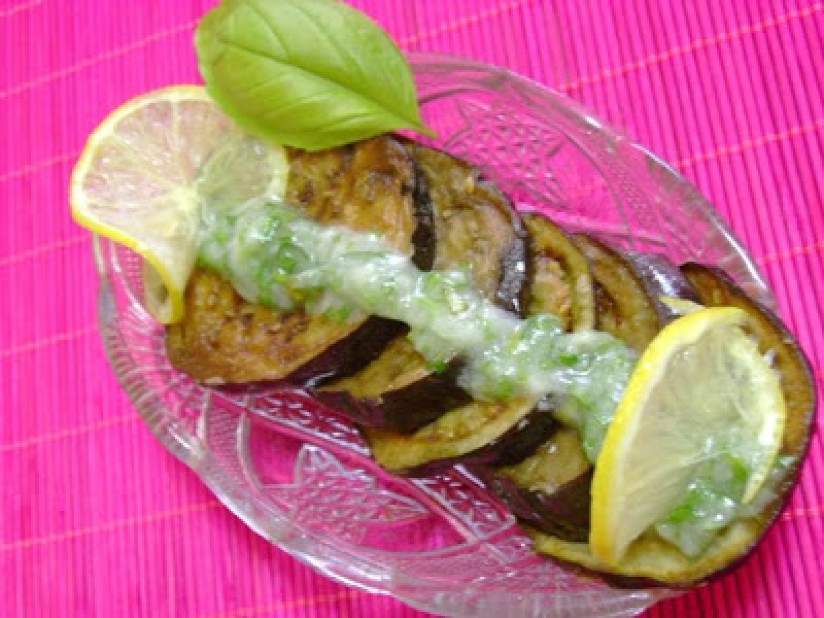 Vinete cu sos de busuioc si usturoi PrecedentulUrmătorul Felul principalFoarte ușor25 min Trimite unui prieten Printează pagina Adresează o întrebare autorului Postează o poză cu rețeta gătită de tine Ingrediente 2 2-3 vinete 4-5 catei de usturoi 1 lamaie 2 linguri faina 1 lingura patrunjel taiat marunt 1 lingura busuioc verde taiat marunt sau busuioc uscat ulei de masline 2 linguri apa minerala sare, piper